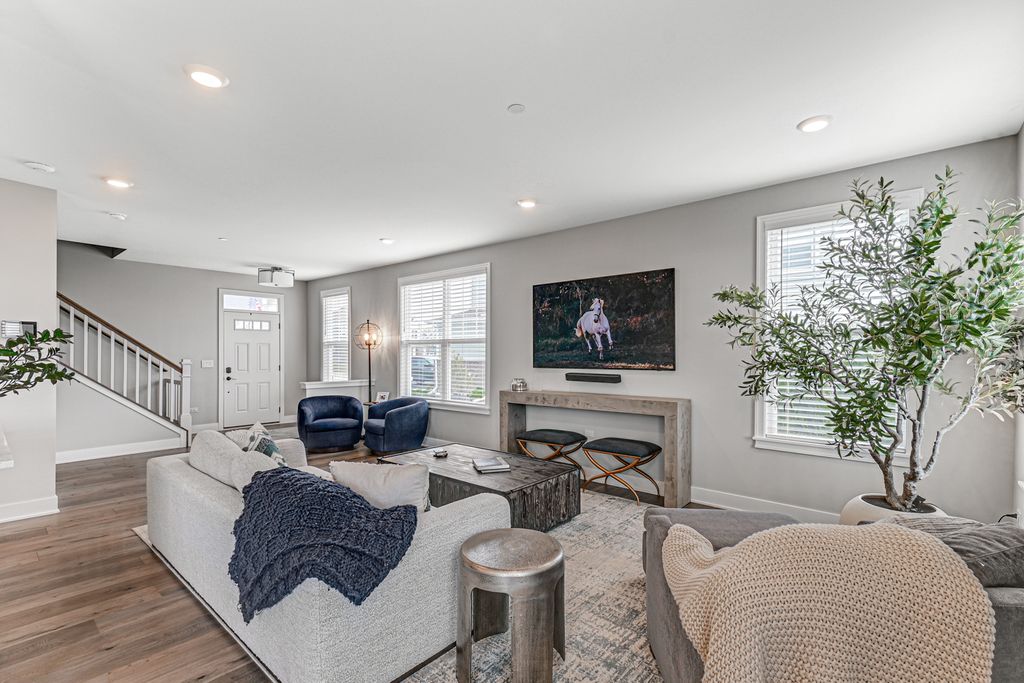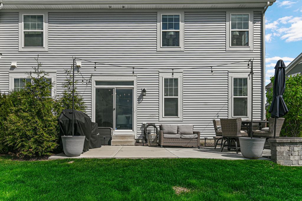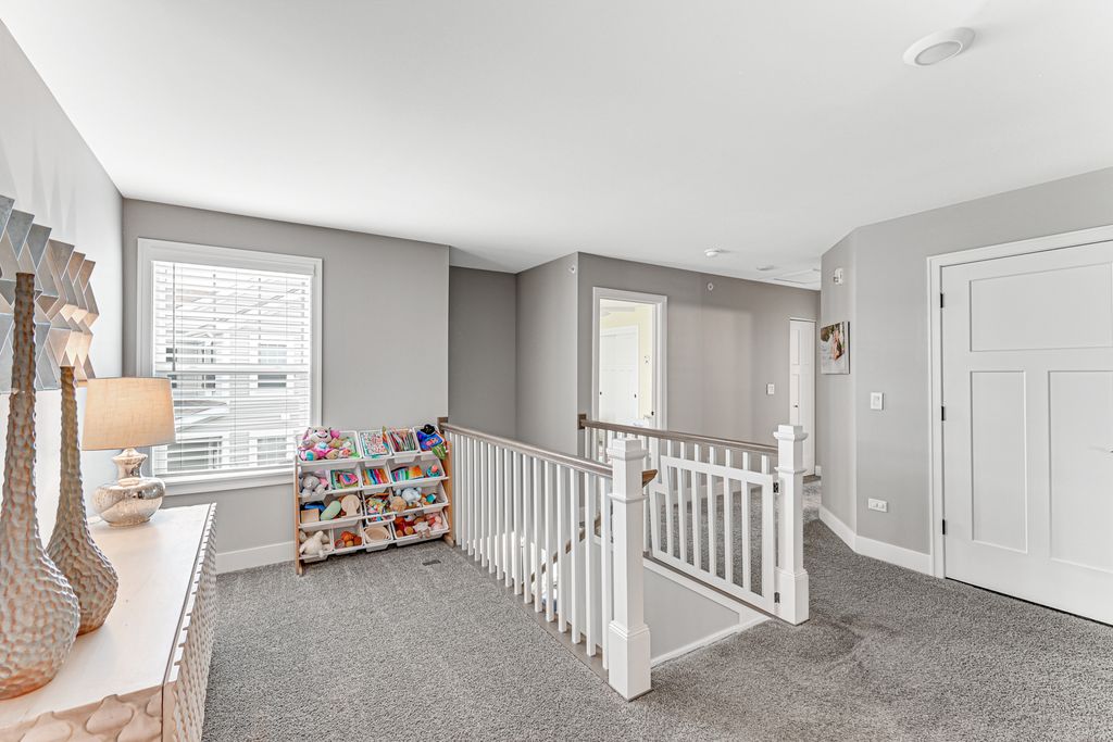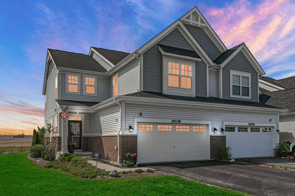 Welcome to The Townes at Silo Bend - where like-new construction meets custom luxury in one of Lockport's most sought-after communities. Built in 2022 and loaded with upgrades both from the builder and beyond, this stunning 3-bedroom, 3.5-bathroom end unit townhome stands apart from everything else on the market. The difference starts below ground - a fully finished basement with a large living area, private office, custom dry bar, full bathroom with shower, and storage room with built-in shelving. The main level impresses from the moment you walk in. Soaring 9-foot ceilings, oversized windows, and an abundance of recessed lighting create a bright, airy feel throughout the open concept with plenty of natural light. The kitchen showcases quartz countertops, a full GE appliance package, and designer light fixtures that elevate the space beyond anything you'll find in standard new construction. The living and dining areas flow seamlessly together, all bathed in natural light from the west-facing rear exposure. Custom upgrades continue throughout - craftsman upgraded baseboard trim and doors, custom window sills and trim, a built-in dry bar, and surround sound speakers already installed. The attached 2-car garage features epoxied floors and finished walls. Step outside to your extended patio - over double the size of standard builder patios - complete with a knee wall surround, perfect for grilling, entertaining, and enjoying warm Illinois evenings. All of this backs to an open field and pond with no homes directly behind you. The unobstructed views with gorgeous west-facing sunsets right from your own backyard. Upstairs, all three bedrooms are thoughtfully positioned on the second floor alongside a unique loft and sitting area - a flexible space perfect for a playroom, reading nook, or home office. Each bedroom features ceiling fans and generous closet space. The primary suite features an en suite bathroom and walk-in closet you'll love coming home to. Two additional well-sized bedrooms share a full hall bathroom, and second floor laundry adds everyday convenience. Additional utility upgrades include whole-home water softener, reverse osmosis system, whole-home humidifier, and battery backup sump pump. For added peace of mind, the seller is including a 1-year home warranty so you can move in with complete confidence. All of this in the award-winning District 33C and District 205, with walking trails, a park, and a welcoming community right outside your door. This is not your average townhome. Schedule your showing today.