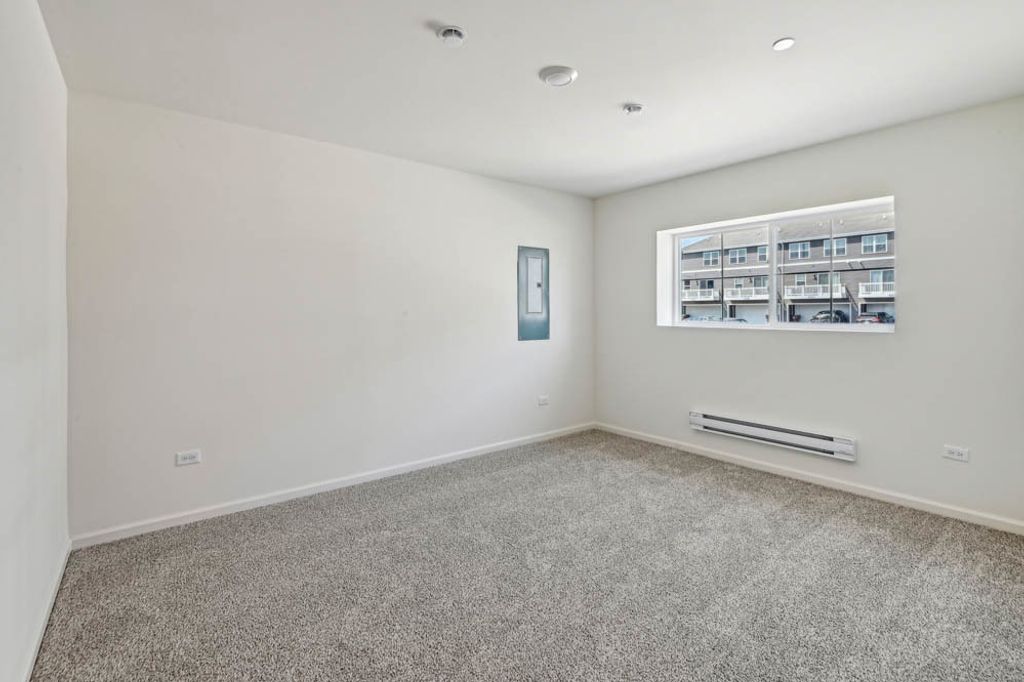 Discover yourself at 6387 Ulster Dr., a beautiful new home in our Oak Ridge community. This townhome will be ready for a summer move-in! Homesite includes a fully sodded yard that is maintained throughout the year as well as snow removal in the winter and is an End Unit! This Garfield townhome plan offers over 1,756 square feet of living space with 3 bedrooms, 2.5 baths, and finished flex room. As soon as you step inside, you'll be greeted by the finished flex room, which is perfect as a den or playroom. Walking up the stairs, you will find this home's open concept living space. The expansive kitchen overlooks both the front dining and back great room areas, making it the ideal space to entertain. Additionally, your kitchen features designer cabinetry, a spacious island with quartz countertops, and pantry. Enjoy your large primary bedroom with a walk-in closet and connecting en suite bathroom. The rest of the upper level features a laundry room, secondary bedrooms with a full second bath, and linen closet. You'll find luxury vinyl plank flooring in the kitchen and dining areas on the main level living space, bathrooms, and laundry. Impressive innovative ERV furnace system and tankless water heater round out the amazing features this home has to offer! All Chicago homes include our America's Smart Home Technology. Photos are of similar home and model home. Actual home built may vary.