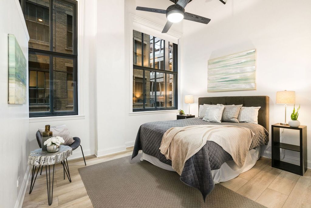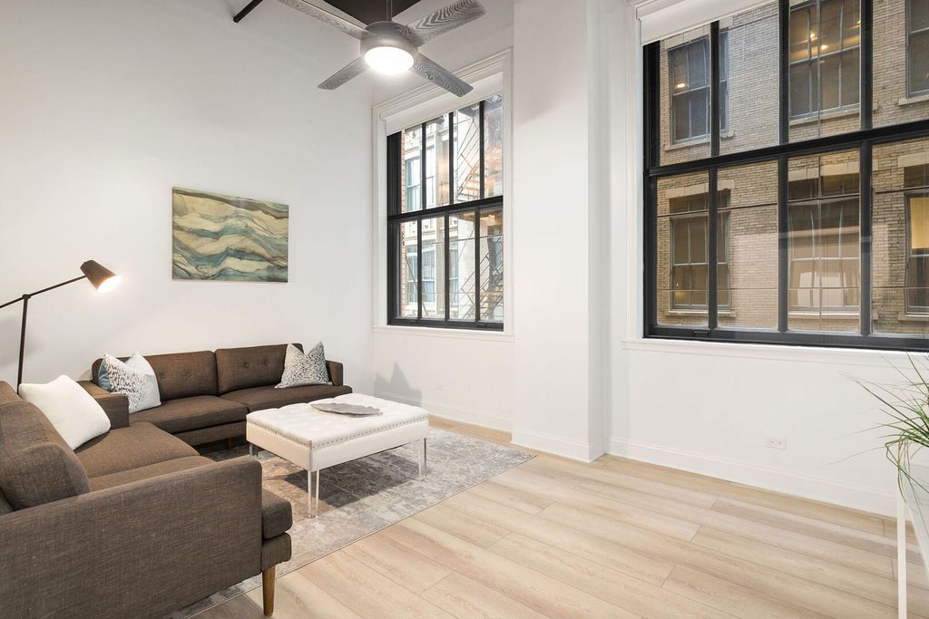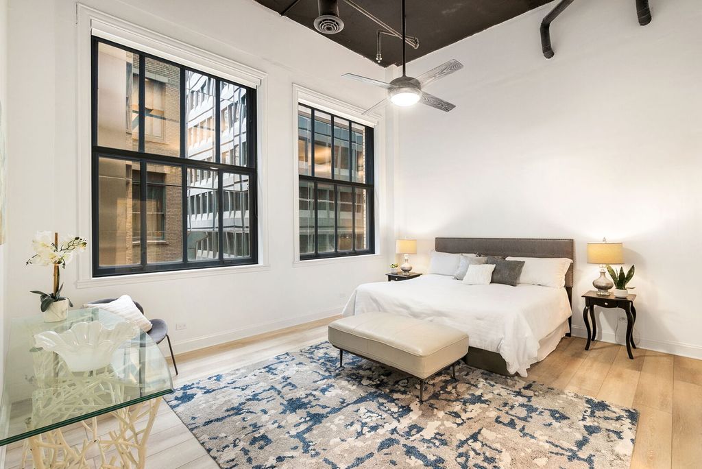 Perfectly positioned on iconic State Street in the heart of Chicago's Loop, this extraordinary 4 bedroom, 2 bathroom full-floor residence with a private in-unit elevator entrance is downtown living at its finest. Occupying the entire fourth floor of the historic Singer Building, this impressive 2,300-square-foot loft offers a level of scale rarely found in this location. Perfectly blending the modern sophistication of today's discerning buyer with the architectural detail and character of its time, this home boasts a truly unique combination of refined luxury, exceptional privacy, and unmatched accessibility. Soaring 15-foot ceilings and dramatic corner exposures set the tone inside, where oversized double-hung windows flood the home with natural light and frame iconic views of the Palmer House and the vibrant streetscape below. Crisp freshly painted white walls create the canvas for your decorating ideas. The expansive open-concept living space is anchored by a full wall of custom shelving, creating a refined yet functional environment equally suited for everyday living or impressive entertaining. The chef's kitchen blends statement design with performance, featuring quartz counters, a striking waterfall island with a breakfast bar, and high-end GE Profile appliances including a beverage refrigerator. Every detail of the home has been thoughtfully reimagined with premium finishes that complement the building's historic character while delivering a sophisticated modern aesthetic. The fully enclosed primary suite serves as a private sanctuary, complete with a dream walk-in closet with a center island, a second walk-in closet, and a spa-inspired ensuite bathroom featuring a double vanity, walk-in shower, and a luxurious freestanding soaking tub. Three additional fully enclosed bedrooms offer exceptional flexibility - ideal for guests, executive-level home offices or waiting rooms, creative studios, or multi-functional living. Wide-plank flooring, custom window treatments, and designer lighting throughout. Premium full-size in-unit washer and dryer, oversized separate private storage unit, and deeded valet garage parking next door (available for $35K). Whether you're seeking a distinguished primary residence, a flexible live-work space in the heart of downtown, or a luxurious in-town retreat, this home delivers. Effortless access to Millennium Park, Grant Park, the lakefront, world-class dining, shopping, museums, theatres, and unparalleled transit connections right outside your front door. Don't miss this once-in-a-lifetime opportunity to own your very own piece of Chicago history!