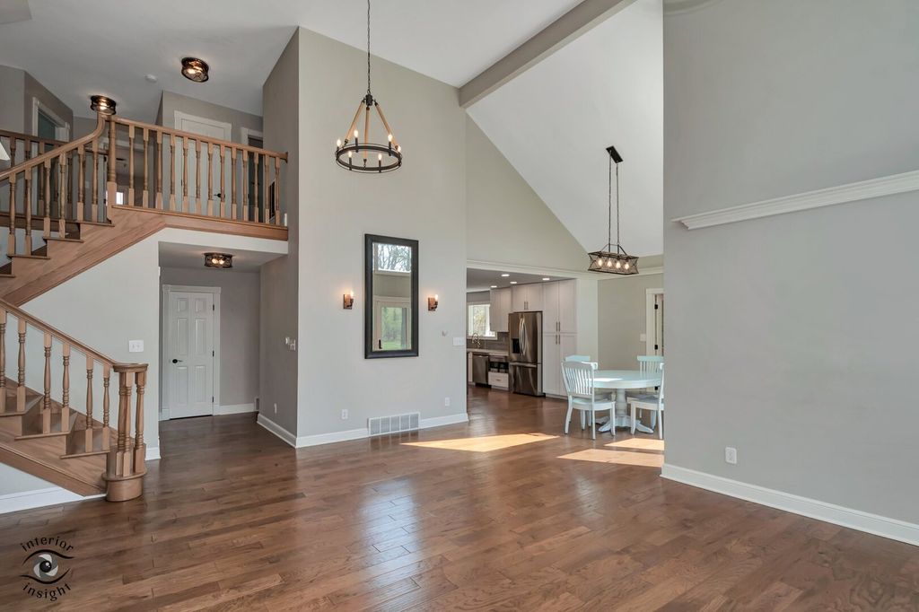 Storybook charm meets modern luxury on this rare 5.13-acre private retreat, tucked away at the end of a long-wooded driveway offering a setting that's nearly impossible to find with this level of privacy and complete updates. This beautifully renovated home features 4-5 bedrooms and 4.5 baths, including a stunning main-level primary suite with a designer tile walk-in shower. The sun-filled great room showcases soaring 17-foot vaulted ceilings, oversized windows, and an open, airy layout. The thoughtfully designed main level also includes a private office, laundry, and a versatile family room with fireplace and full bath perfect for related living. The fully finished basement offers a workout or recreation space, abundant storage, and two separate access points. Recent updates include a completely remodeled kitchen with granite countertops and newer appliances (2022), new roof and gutters (2024), designer paver patio and professional landscaping (2024), air conditioner (2026), whole-house generator (2023), sump pump (2023), and radiant heated floors for added comfort. The property also features a detached garage and an impressive 35x45 outbuilding ideal for storage, hobbies, or workspace. Hot tub is negotiable. Complete with a fire pit and surrounded by serene woods, this spectacular property offers the perfect blend of luxury, space, and total privacy.