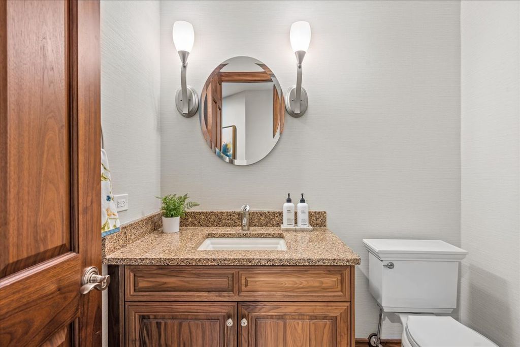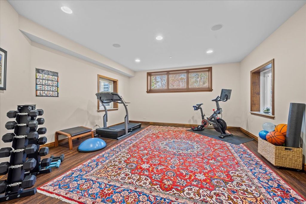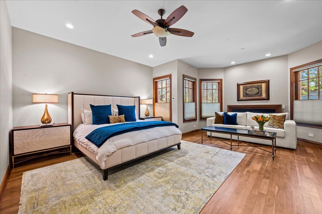 Stunning newer construction home in an unbeatable in-town location, just seconds from shops, dining, and everything you need. This beautifully designed residence features a sought-after first-floor primary suite complete with its own cozy fireplace. Exceptional curb appeal shines with a welcoming covered front porch finished in bluestone and limestone, leading into a dramatic two-story foyer. Inside, you'll find exquisite custom millwork, rich hardwood flooring, and abundant natural light from the home's ideal south-facing exposure. A private library/office offers the perfect space for working from home or relaxing with a book. The thoughtfully designed floor plan is ideal for both everyday living and entertaining, with a formal dining room that flows seamlessly into the inviting living room with fireplace, and a wet bar/butler's pantry for effortless hosting. The chef's kitchen is a true showstopper, featuring professional-grade appliances including a Wolf range/oven, oversized Sub-Zero refrigerator, stunning solid walnut cabinetry, and a spacious walk-in pantry. The adjoining breakfast area opens to a covered bluestone patio overlooking the beautifully landscaped yard with fire pit, play area, and plenty of room for outdoor entertaining. A convenient first-floor laundry room completes the main level. Upstairs, you'll find generously sized bedrooms, including one with an en-suite bath and ample closets. Two additional bedrooms are connected by a Jack-and-Jill bath, along with a recently finished bonus room accessed by a private staircase-ideal as a guest suite, in-law arrangement, or flex space. The finished lower level offers exceptional additional living space, including a large recreation area, exercise room or fifth bedroom, a full bath with steam shower, and a wine cellar. Additional highlights include radiant heat throughout the basement and garage, Marvin windows and an oversized three-car garage. Meticulously maintained and thoughtfully updated, this exceptional home truly has it all.