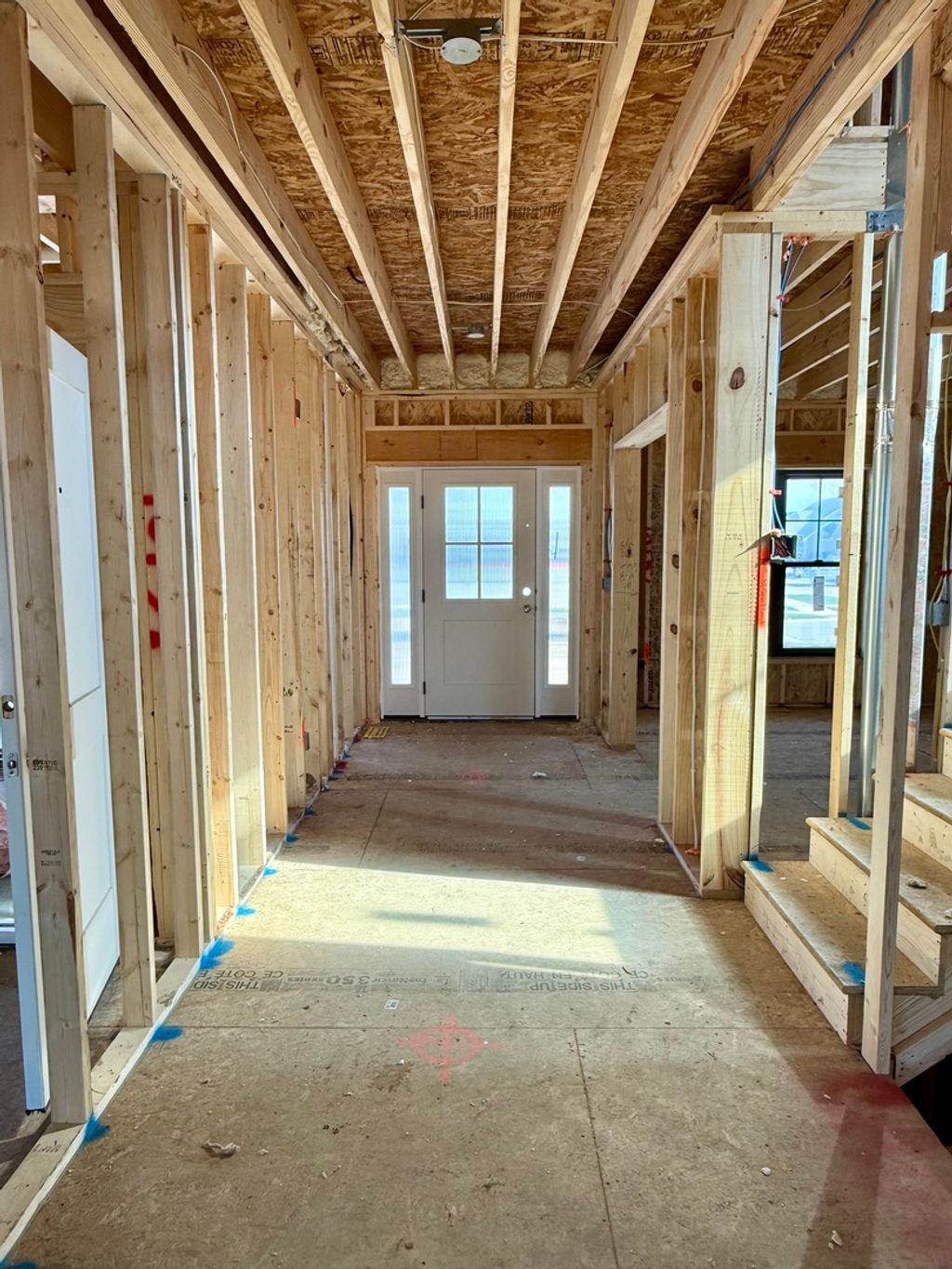 Harbored in the popular Prairie Meadows Subdivision, this new spacious 2-story home offers 3,140 finished sq ft with 5 bedrooms and 3.5 baths, a finished basement with 5th bedroom, full bath, rec room, and storage area. 3-car attached garage. Open-concept main level features a well-appointed kitchen with caramel Shaker cabinets, quartz countertops, tiled backsplash, large center island with bar seating, and walk-in pantry. Includes GE stainless steel appliances and modern range hood with built-in microwave. Casual dining area off kitchen. Primary suite offers tiled shower and spacious walk-in closet. Additional highlights include second-floor laundry, drop zone with lockers, and matte black/Delta plumbing fixtures throughout. Exterior features vinyl siding with stone accents and covered front porch. Energy-efficient construction includes high-efficiency HVAC, high-efficiency water heater, Energy Star appliances, programmable thermostat, Low-E Andersen windows, 2x6 exterior walls (R-21 insulation), R-60 attic insulation, and air-sealed envelope. Built to meet 2021 Energy Code. Additional features: water-tight drainage plane system, engineered wall studs, dual sump pumps with backup, and radon mitigation system.