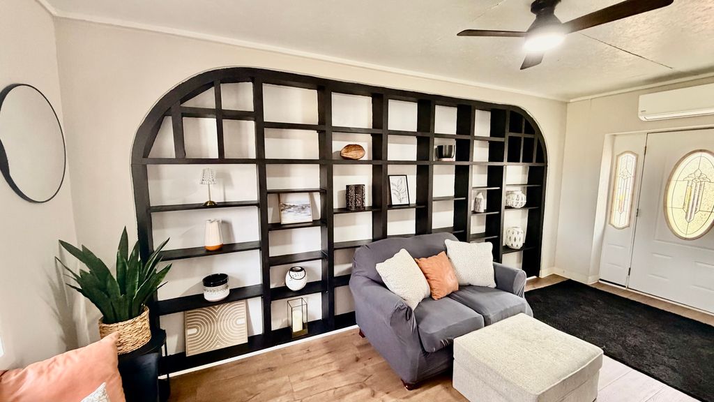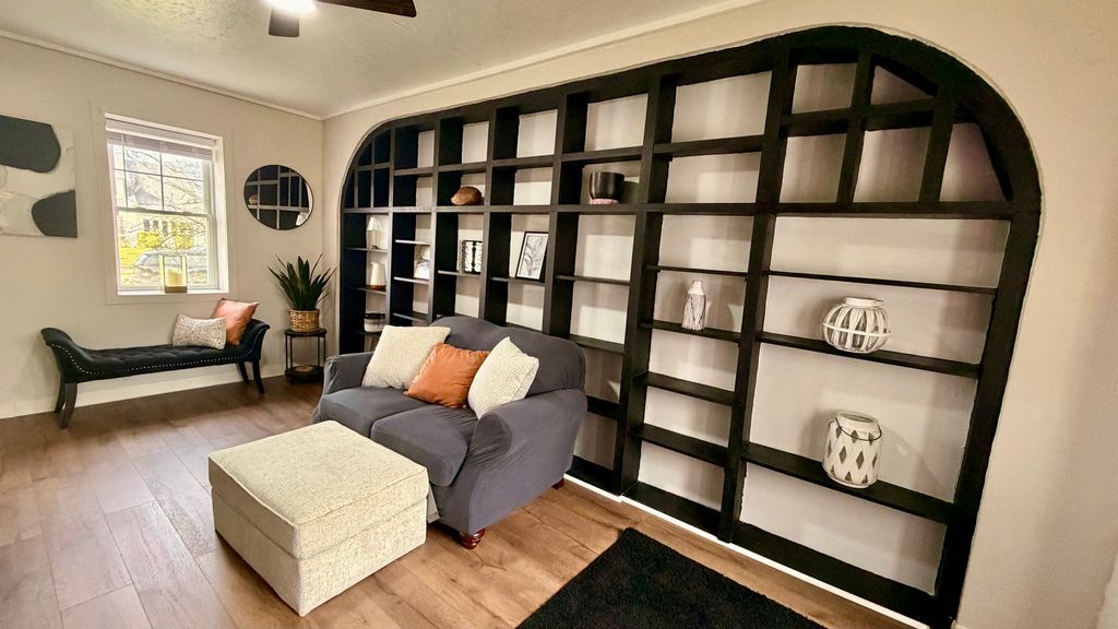 Built in 1926, this 1,800 sq ft stucco gem beautifully balances timeless character with thoughtful modern updates. Enter through the arched front door and be welcomed by restored original flooring that sets the tone for the home's craftsmanship. The spacious family room is filled with natural light and features a classic stucco wood-burning fireplace, perfect for cozy evenings. French doors open to a lovely den with an attached bath, ideal for a home office or reading nook. A charming living room adds architectural interest with an abundance of natural light. The dining room with built-in storage flows seamlessly into a fully remodeled kitchen-complete with new flooring, cabinetry, and modern appliances. Upstairs, you'll find three spacious bedrooms and a full bathroom that are just as charming as the downstairs. Outside, the backyard has been beautifully landscaped and has a gazebo that is perfect for relaxing and enjoying your outdoor space. The 2-car detached garage has alley access, solar panels (contract to be transferred at closing) and privacy fence are additional features of this home. If you love charm and curb appeal, then this one is for you! It has been meticulously kept and is ready for a new owner. The home also has a full unfinished basement, perfect for a workshop or extra storage. This distinctive home is a rare blend of historic charm and modern convenience-ready to welcome its next chapter!