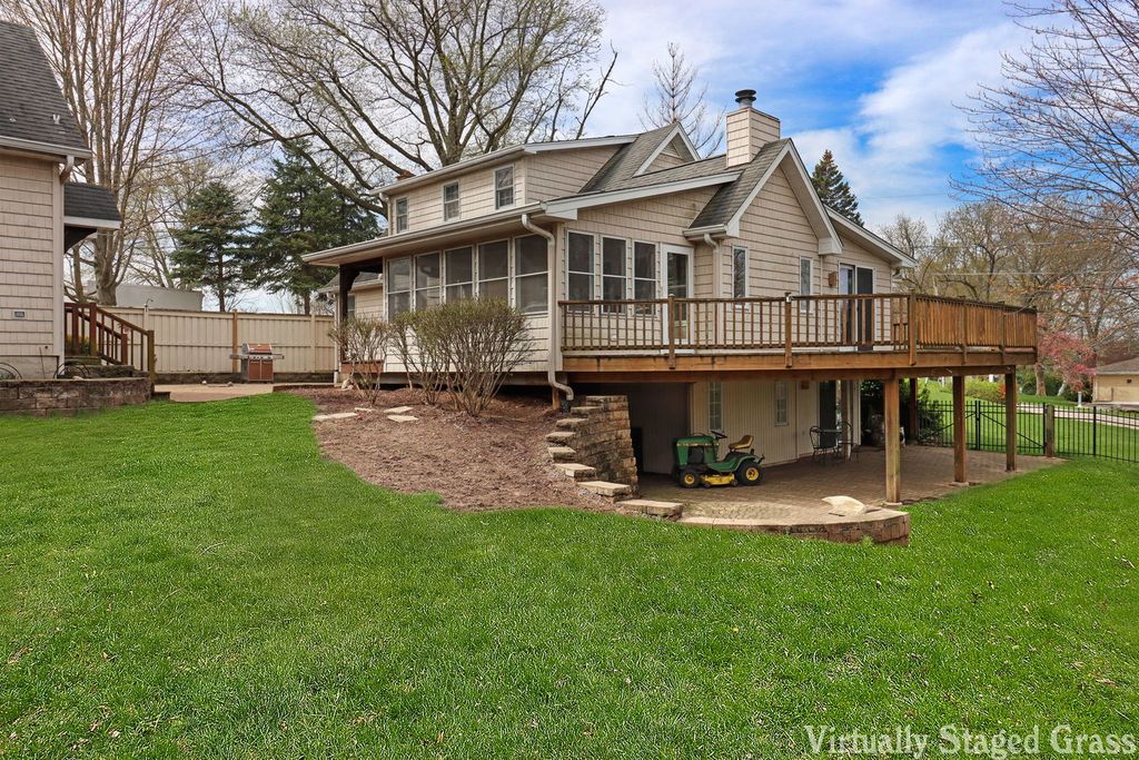 Room to spread out, flexible living space, and Chain O'Lakes access - this 4 bedroom, 4 full bath home has it all. Inside you'll find an updated kitchen with stainless steel appliances, LVP flooring throughout the main floor, a cozy fireplace, and a bright sunroom with skylights. The finished walk-out basement offers even more living space, including a large bedroom with radiant heated floors. Outside, enjoy a large rear deck, spacious yard, and fenced-in yard area. The detached garage also features a finished bonus room above, perfect for a home office, recreation room, guest space, or studio. A rare opportunity to own a home with size, versatility, and a location that puts you close to all the fun and recreation of the Chain O'Lakes.
