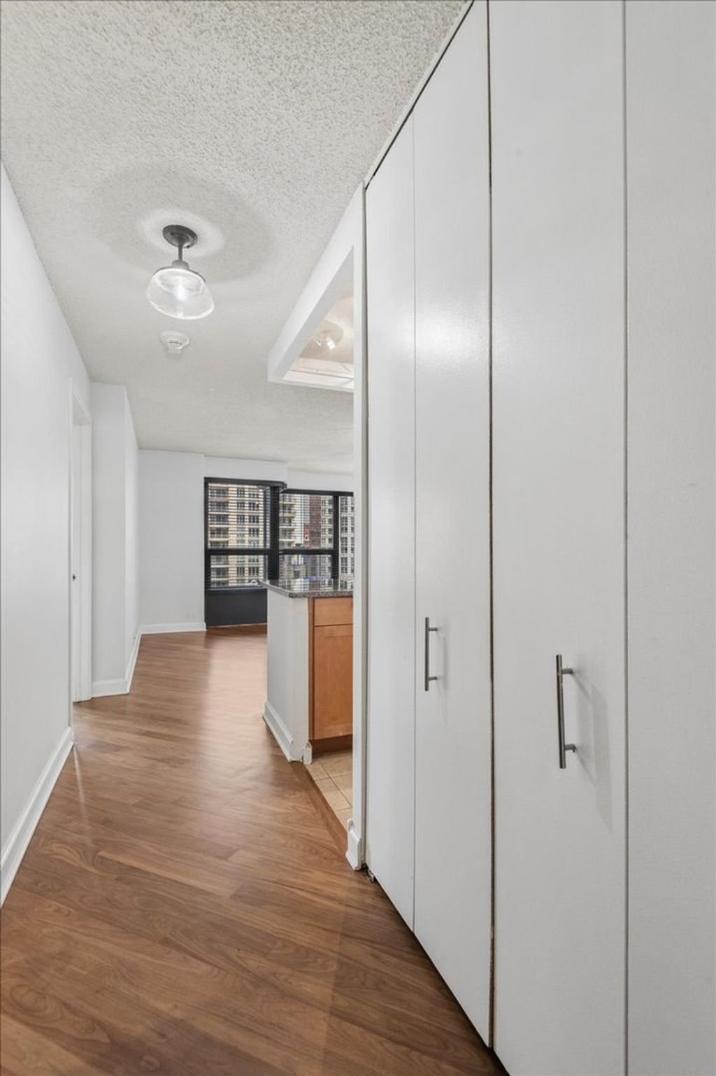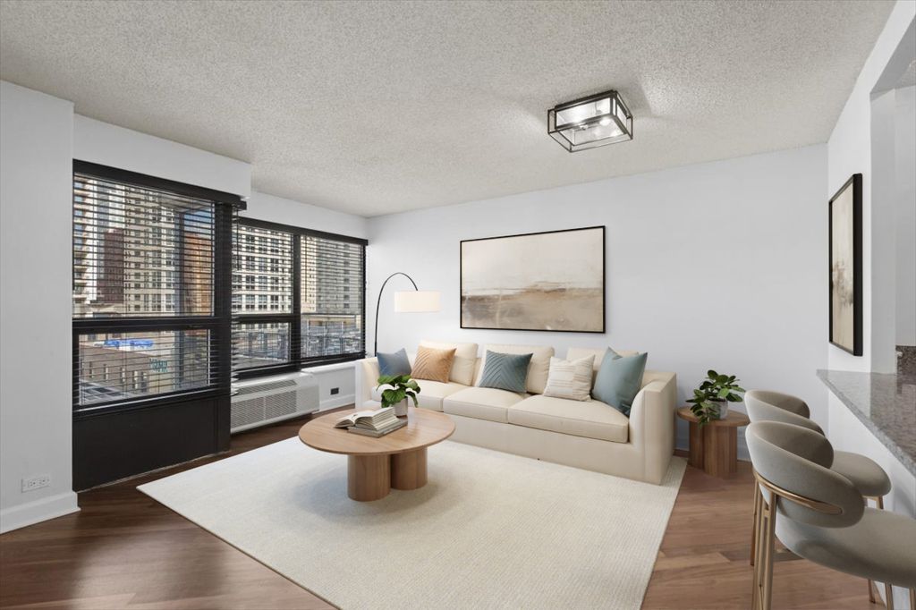 Move-In Ready 1 Bed, 1 Bath in One of River North's Best Locations! Stunning Condo Features Solid Diagonal Walnut Floors Just Refinished Throughout, Entire Condo Freshly Painted, Updated Lighting Throughout & Tons of Closet Space. Open Concept Living with the Updated Kitchen in the Heart of the Home - Features Shaker Style Cabinetry with Ample Storage, Stainless Steel Appliances, Glass Tile Backsplash & Huge Breakfast Bar Open to the Living Room for Entertaining. Spacious Living Room with Stunning City Views. Generous Sized Bedroom Large Enough to Fit a King-Sized Bed with a Large Walk-In Closet. Renovated Bathroom with Walk-In Shower with Glass Frameless Doors, Modern Vanity & Updated Lighting. Truly Move-In Ready Condo in of of River North's BEST Locations! Parking Space #78 Additional $25k. Everything Right Outside Your Front Door Including LifeTime Fitness and Whole Foods at One Chicago. Everything from The Mag Mile Shopping, to the Best Restaurants in the City & the Lakefront Path. Assessments Include Everything Except Electric - Bulk Cable Package, Internet, Water & All Amenities. Outstanding Building Amenities Include 24-Hour Doorman, Award Winning 2 Story Sundeck & Outdoor Pool, Comprehensive Gym, Biz Center, Theater & Party Room.