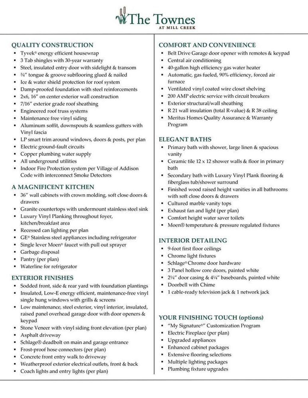 Welcome to The Townes at Mill Creek, where modern living meets convenience! This beautiful new construction home offers 2 bedrooms + a spacious den, 2 baths, and a 2-car garage, all within the heart of Addison. Step inside to discover 1524 square feet of sprawling open-concept living, highlighted by soaring 9' ceilings and exquisite finishes throughout. The kitchen showcases sleek GE stainless steel appliances, including a French door refrigerator, alongside granite countertops, a tiled backsplash, and 36" wall cabinets with crown molding, soft-close doors & drawers. The spacious primary bedroom boasts a serene tray ceiling, large walk-in closet and a beautiful en-suite bathroom with upgraded finishes and a double bowl vanity. You'll love the additional den that offers a versatile space for work or relaxation, with charming French doors and a tray ceiling. Outside, a spacious deck provides the perfect spot to relax and unwind while overlooking the backyard. With its prime location, this property ensures effortless access to major expressways, retail shopping destinations, and endless dining options along Lake St. This development is second to none, setup a tour today!