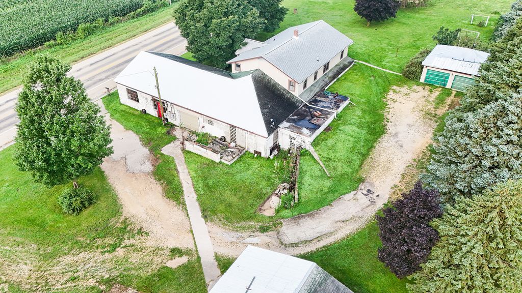Endless Potential on Pines Road - Former Creamery Turned Unique Homestead Welcome to a truly one of a kind property nestled on nearly 2 acres in Polo, IL, just off scenic Pines Road. Once home to a historic creamery, this rare find now offers a unique blend of charm, history, and functionality. The main structure is a thoughtfully converted ranch style residence perched above a spacious shop area, perfect for anyone needing ample workspace right at home. The 2 bedroom, 1 bath home provides cozy living quarters with a bird's eye view of the surrounding countryside and your own private acreage. The shop below offers serious square footage for a workshop, studio, or business endeavor, the possibilities are endless. Outside, you'll find a detached garage for additional parking or storage, as well as an additional shed offering even more utility space. With nearly two acres of open land, there's plenty of room for expansion, gardening, or just enjoying the peace and quiet of rural living. Whether you're a hobbyist, small business owner, or someone looking for a distinctive property with character and functionality, this former creamery could be the perfect fit. Don't miss your chance to own a piece of local history with room to dream big.