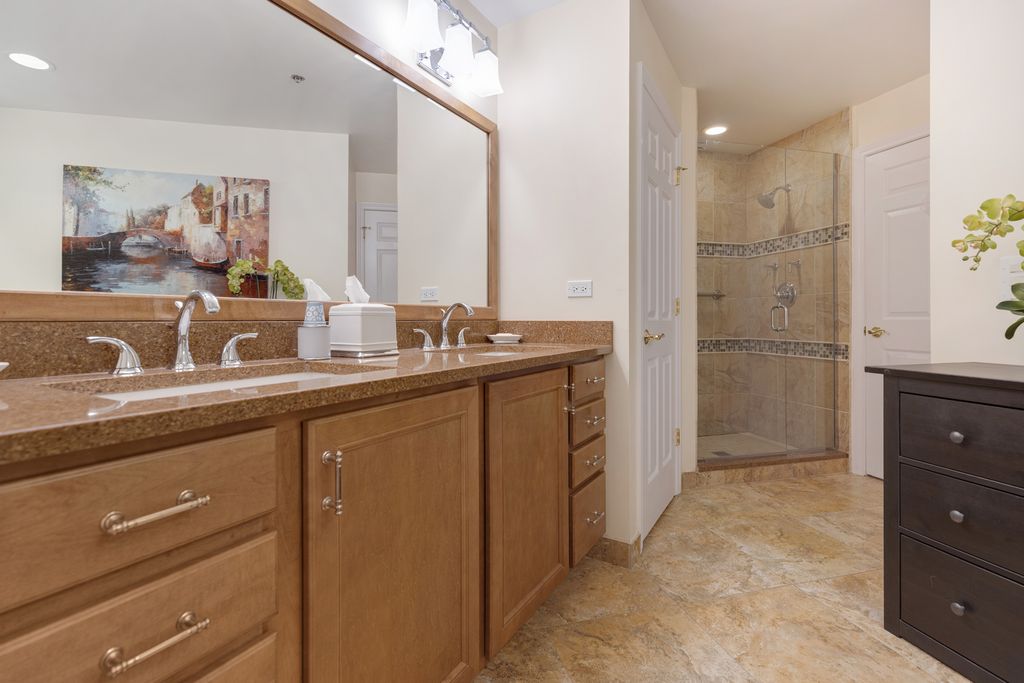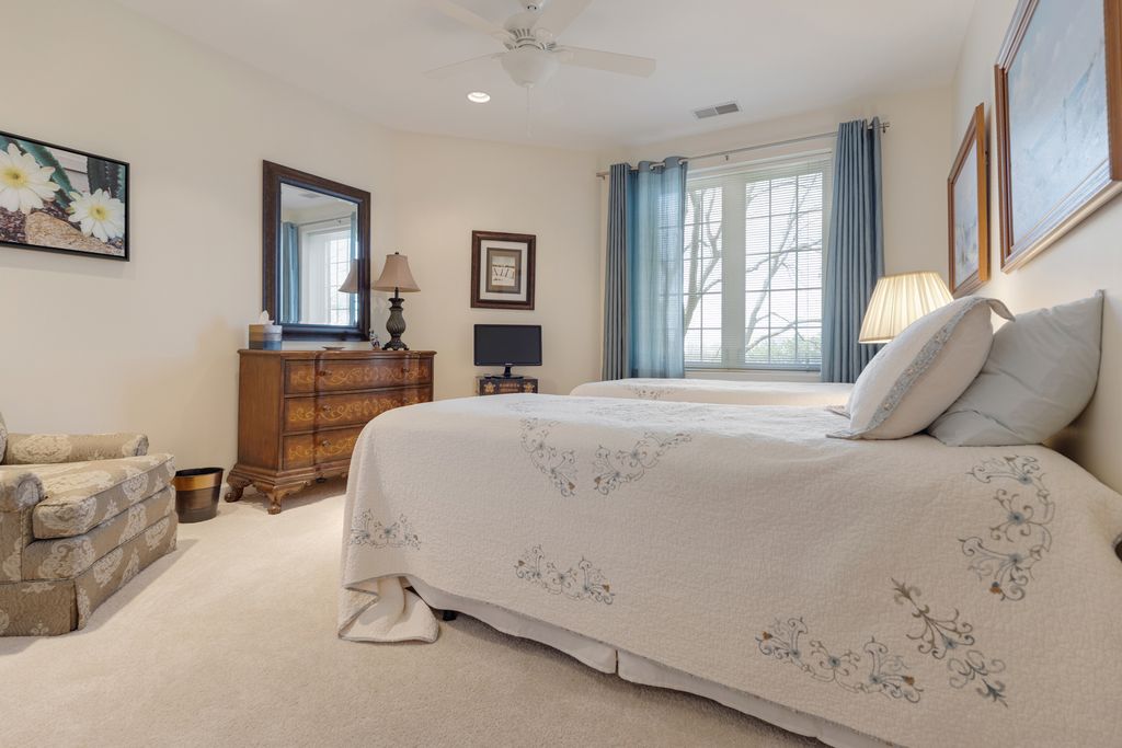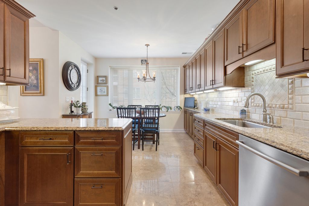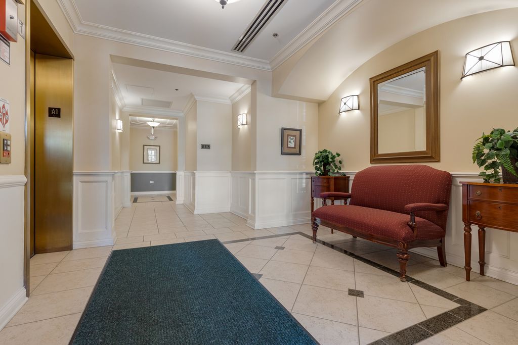 RARELY AVAILABLE and beautifully updated LARGEST 3BR, 2.1 BA END UNIT in lovely professionally managed elevator building. Pristine condition!!! This luxurious condo offers spacious living & dining rms for versatile entertaining with gleaming hardwood floors and lots of windows for a bright and airy space. Updated kitchen with granite countertops & breakfast area w/balcony overlooking the landscaped grounds w/mature trees (no view of Willow or Waukegan Roads). Primary bedroom has walk-in closet w/built in organizers & updated bathroom suite with separate toilet room and large shower. 2nd full bathroom is updated with same high quality finishes as the primary bathroom suite. In-unit laundry has a newer stackable washer and dryer and a second refrigerator. New Furnace and AC (2023) and cook's kitchen features a brand new, deluxe stainless steel kitchen refrigerator. INDOOR PARKING FOR TWO CARS (spaces 16 &17) in heated garage plus adjacent secured storage space. Lovely sitting room off the elevator on the 2nd floor offers a nice sunny place for a guest or resident to linger. Living Room entertainment center included in sale of the condo. Close to grocery stores, restaurants, walking paths, recreation and more. SHOWINGS TO BEGIN APRIL 21ST.