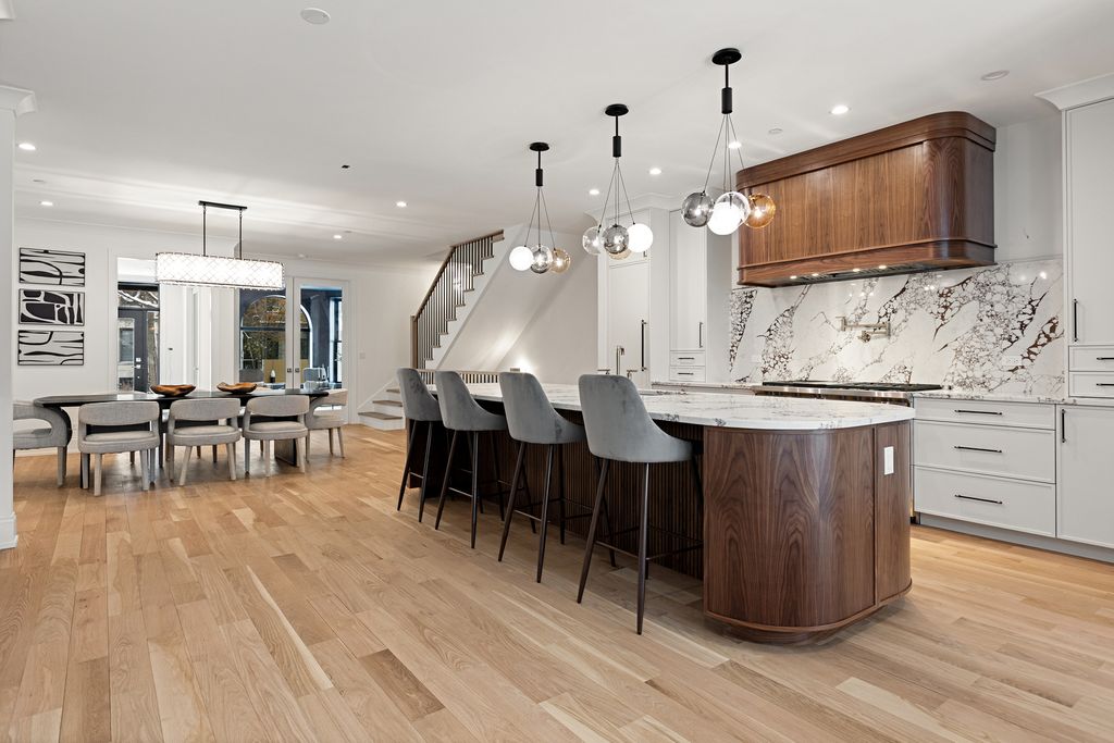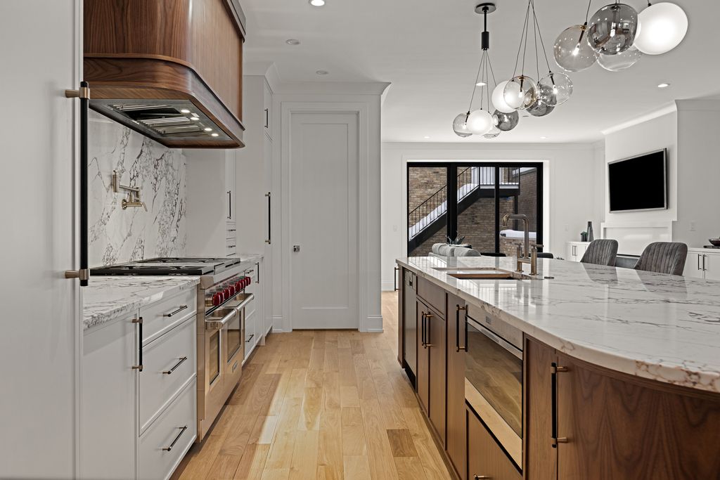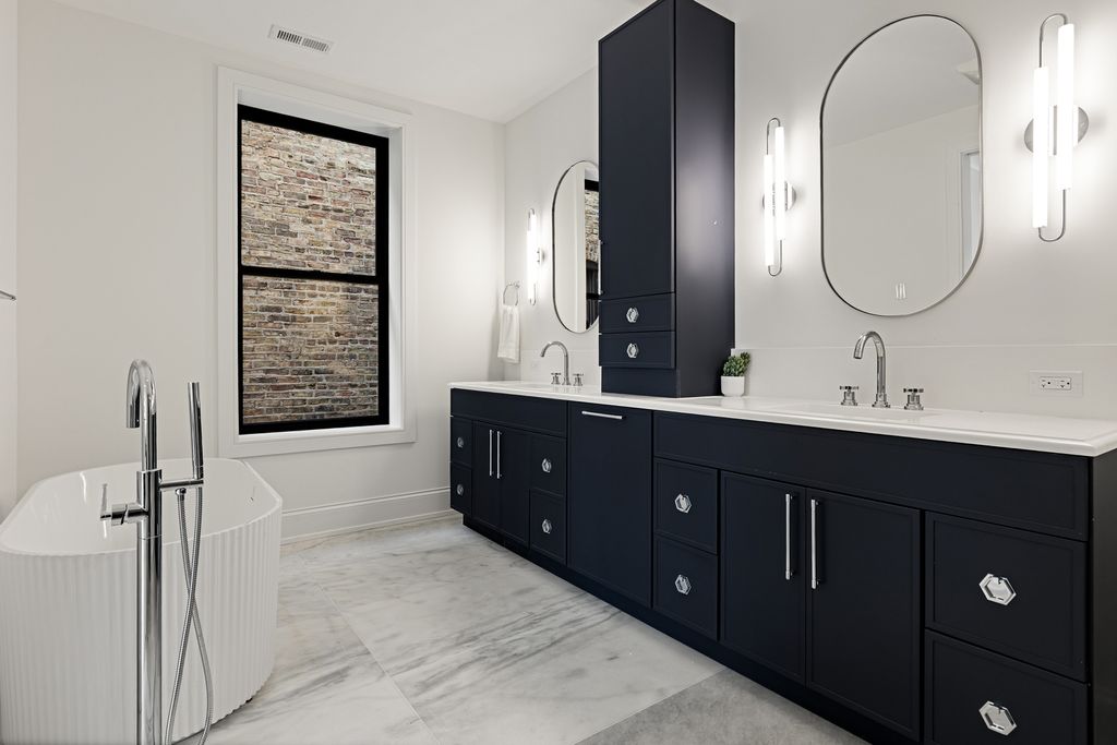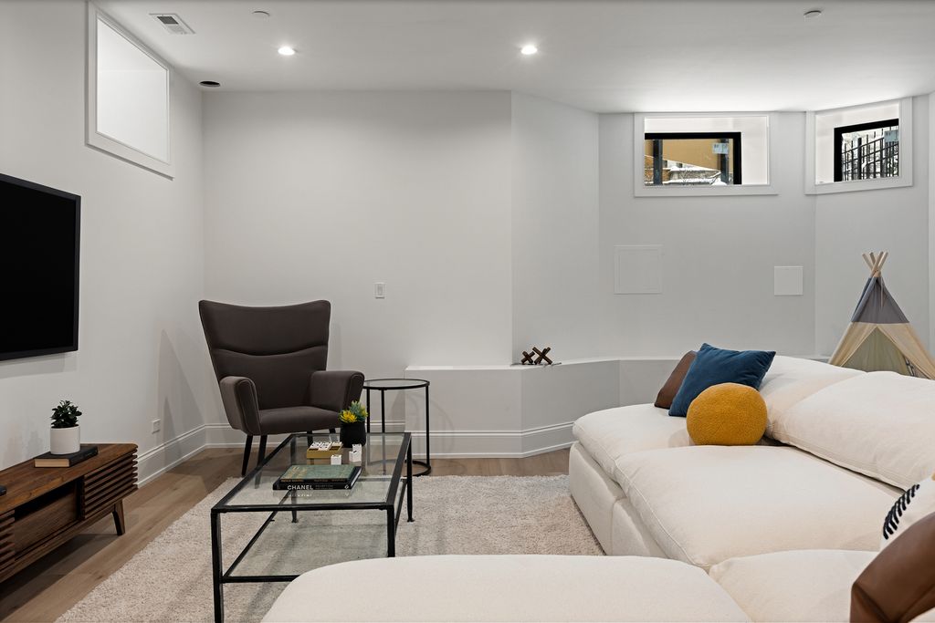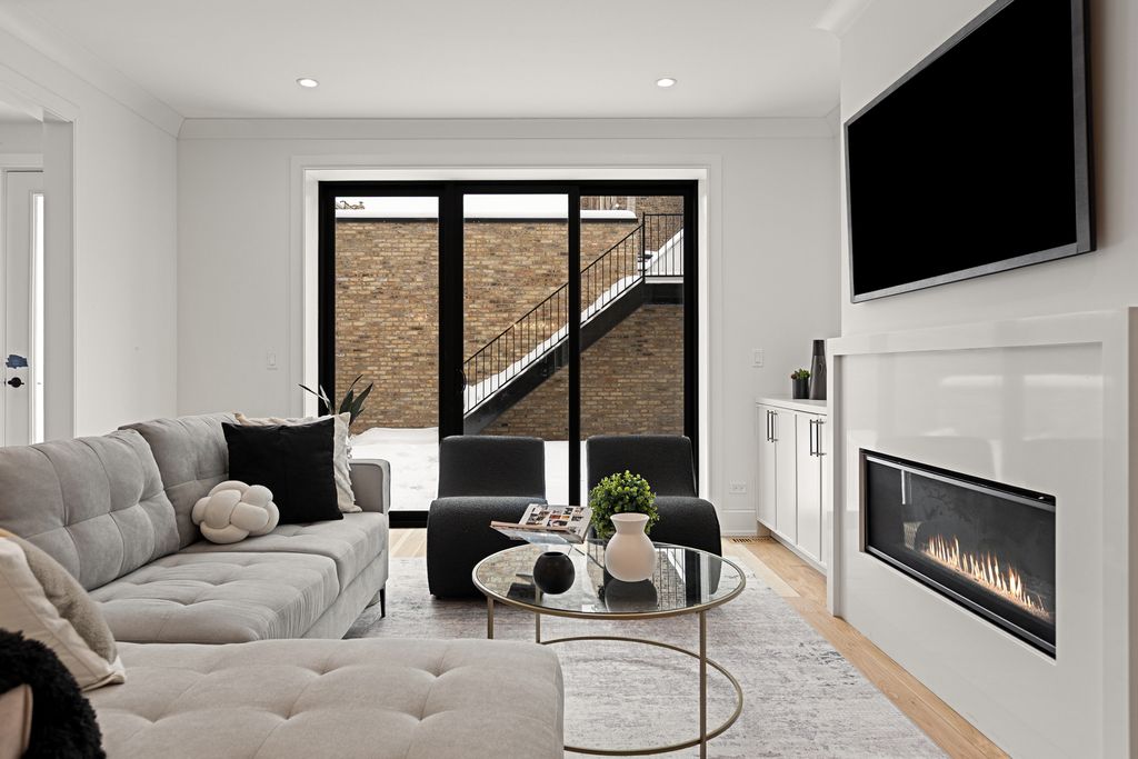 Situated in the Southport Corridor neighborhood within the exceptional Blaine Elementary district, this just-completed, architecturally striking residence on a 30' wide lot delivers a full, ground-up reconstruction behind its original granite and stone facade, offering a thoughtfully designed floor plan with all-new, custom finishes throughout. Spanning approximately 5,539 square feet across four expansive levels, the home offers 6 bedrooms, 5 full bathrooms, and 2 powder rooms, designed for both everyday living and elevated entertaining. The main level features a bold, color-drenched parlor living room with herringbone white oak flooring and oversized arched windows. The curved bow window defines the dining room and carries through multiple levels as a signature architectural detail. The chef's kitchen is anchored by a 48" Wolf range, paneled Sub-Zero refrigerator and freezer columns, quartz countertops, custom cabinetry with curves complimenting the architectural details of the home, and a statement custom hood. Excellent storage including two pantry closets and a wet bar, all opening to a warm family room centered around a fireplace with built-ins. A well-designed mudroom adds everyday functionality, and the rear snow melt ready terrace extends off the family room, connecting to the 3-car garage roof deck for seamless indoor-outdoor living. The home is finished with brand new windows, roof, mechanicals throughout and exceptional millwork including 8' doors, white oak flooring, crown molding, and custom closet systems. The second level offers four bedrooms and three full baths, including a spacious primary suite with dual walk-in closets and a spa bath featuring a double vanity with exceptional storage, heated floors, an oversized steam shower with rain head, and a separate soaking tub. A proper walk-in laundry room with sink, storage, and folding counter adds everyday convenience. The third-floor loft provides exceptional flexibility with a full wet bar, dishwasher, and full bath, ideal for a media room or home office, and opens to an expansive west-facing rooftop deck with both covered and open-air spaces, enhanced by original castle-inspired architectural elements that create a unique elevated setting for entertaining, sunset views, and the ability to listen in to nearby Wrigley Field concerts and game day cheers. The lower level is fully finished with 9' ceilings, radiant heated LVT flooring throughout, a large recreation room with wet bar and beverage fridge, two additional bedrooms connected by a Jack and Jill bath, and an additional powder room. All of this is set just steps from the best of Southport Corridor, with easy access to boutiques like Alice & Wonder, Lululemon, Free People, and Madewell, along with dining and cafe favorites including Crosby's Kitchen, Uncommon Ground, Bake House, Starbucks, Swift & Sons Tavern, Big Star, and Tango Sur, plus nearby green spaces like Gallagher Way and Juniper Park, offering a rare opportunity to own a just-completed, ground-up residence of this caliber in one of Chicago's most vibrant neighborhoods.