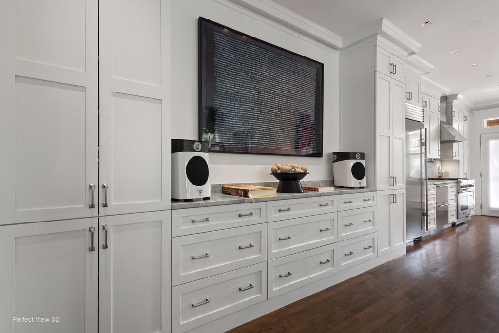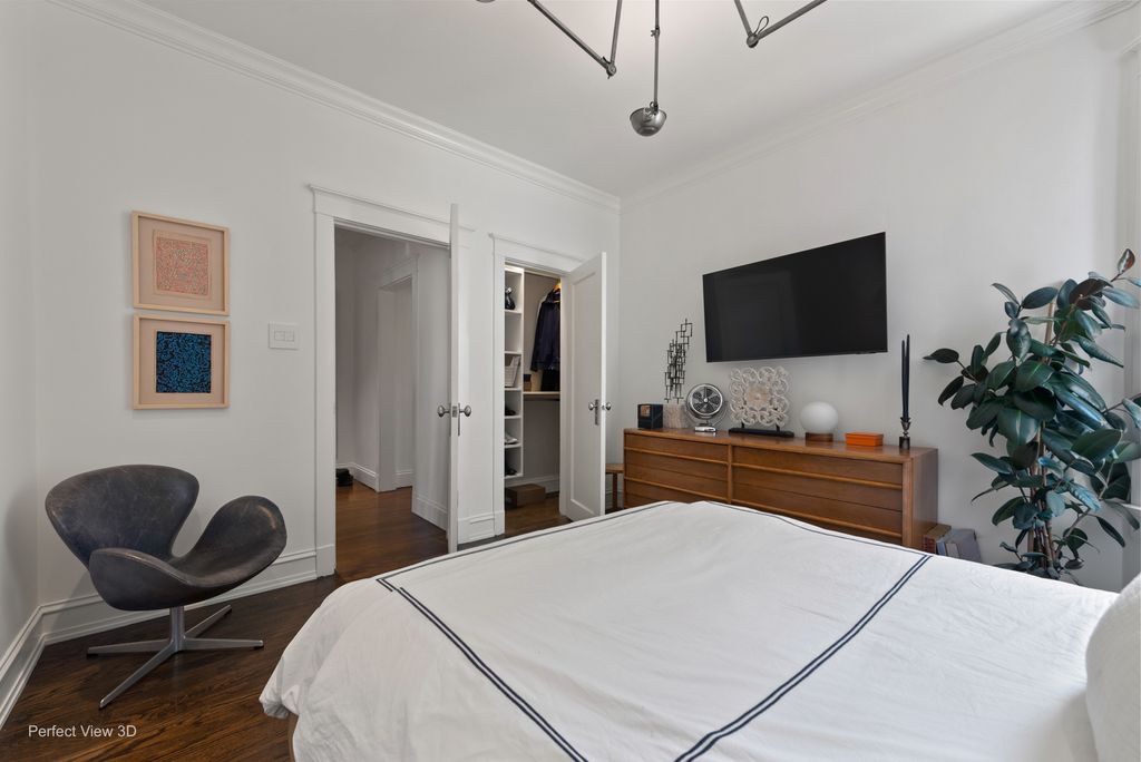 Wow! Modern marries vintage! This "Magazine Worthy" 1350 sf 2bd/2bth Edgewater Glen condo is immediately available. Artistic owner spared no expense in this major top to bottom renovation. Spacious and sunny open floor plan. Living room includes stealth "Vision Art" painting above your fireplace wall- with a click on your remote the art disappears to reveal a large 55" TV system. Music and audio lovers will appreciate the acoustic wall which acts as a beautifully designed wall. Custom forged crown molding in all rooms- along with inset lighting in your 9 ft ceilings. Maple wood floors everywhere including the 2 bedrooms. Subzero "All" refrigerator & Subzero freezer drawer top this gourmet kitchen along with top of the line Thermador range & "sapphire glow" Thermador Dishwasher. Custom kitchen features impressive Omega Kitchen cabinets with lifetime warranty including an appliance "garage" rollout coffee service, complete with toaster oven and microwave, and also cleverly hides a Miele washer dryer. Brazilian "Quartzlite" counters are a highlight. Sunroom speaks nature- and a respite from a busy day overlooking beautiful mature parkway trees. Private back porch overlooks colorfully landscaped garden with evening lighting! Make this your Shangrila at 1433 Rosemont, 2W in Edgewater Glen!