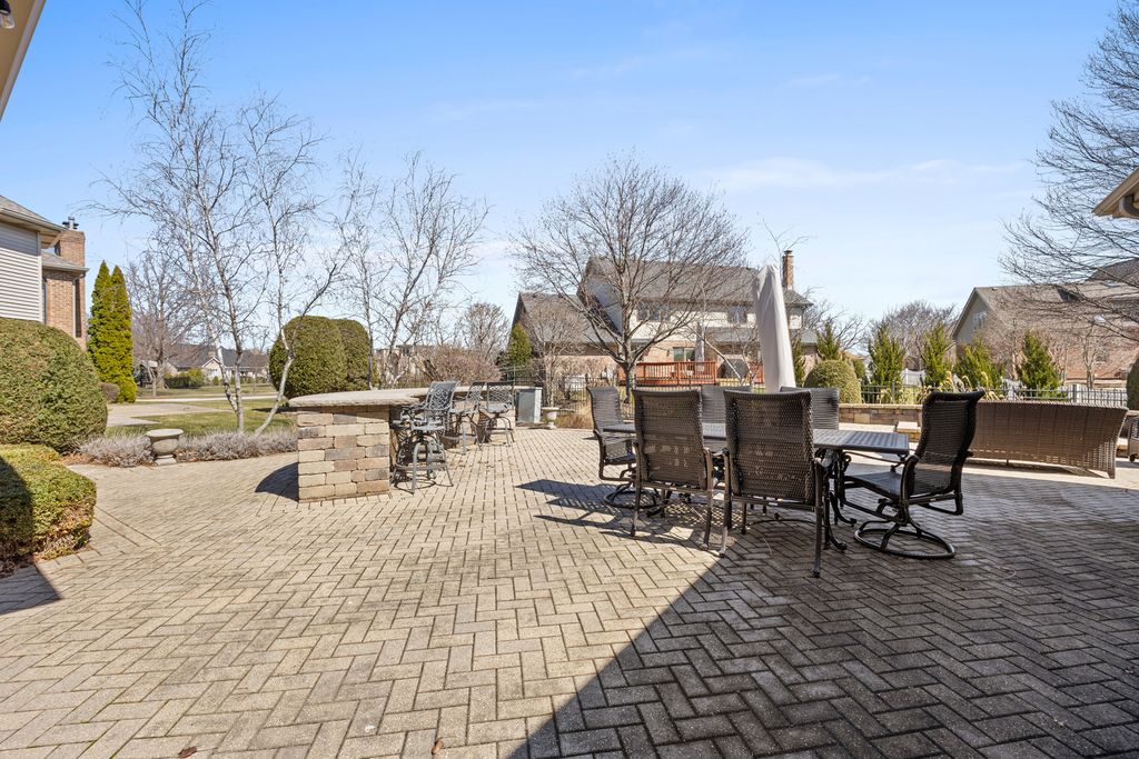 Exquisitely remodeled luxury ranch in the heart of Orland Park! Boasting over 4000 sq ft with completed finished lower level. This rarely available ranch with versatile loft and fully finished basement offers exceptional space, and a seamless blend of sophistication, comfort and elevated design. Hardwood floors run throughout the main level, while elegant features and fresh paint enhance the spacious living and dining rooms. The large eat-in kitchen features newer stainless steel appliances, granite countertops, a generous pantry, and soaring cathedral ceilings. The inviting family room, complete with a beautiful fireplace, is perfect for relaxing or entertaining. The spacious primary suite includes a fully remodeled spa-like bath with luxurious finishes and an additional vanity area for added convenience. Three additional bedrooms are generously sized and offer walk-in closets. The loft provides flexible space ideal for a home office, playroom, or additional recreation area. The full basement is ideal for related living or extra recreational space, the space includes a second kitchen and full bath. Step outside to your own private oasis featuring a brick paver patio, built-in-bar, dining area, and fire pit--perfect for summer evenings or outdoor entertaining. a brick paver driveway, new window awnings, and outstanding curb appeal make this home even more impressive. Additional highlights include NEW Front WINDOW and front door, new garage doors, epoxy flooring in the garage, a whole house GENERATOR plantation shutters throughout. Newer HVAC newer appliances, and extensive remodeling make this home truly move-in-ready. Meticulous attention to detail at every turn, this residence offers a truly turnkey luxury lifestyle. Call today for a showing.