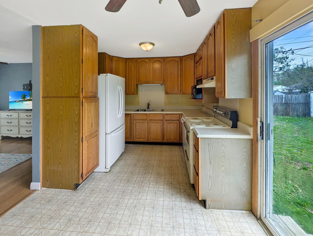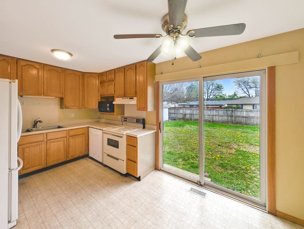 1203 Mount Vernon Drive in Bloomington offers 4 bedrooms, 2 full bathrooms, and over 1,700 square feet of living space. The main floor welcomes you with a spacious living room featuring a large bay window with plantation shutters, filling the space with natural light. The kitchen provides ample counter space, abundant cabinetry, and room for an eat-in table, with a sliding glass door leading to the fenced backyard-perfect for everyday living and entertaining. Three bedrooms and a full bathroom are located on the main level. The finished basement expands your living space with a generous family room, fourth bedroom, laundry area, and a second full bathroom featuring a custom tiled shower. Additional highlights include a one-car garage, an oversized driveway for extra parking, and a detached shed for added storage. Conveniently located near schools, parks, and shopping, this home offers comfort, space, and value in a central Bloomington location.