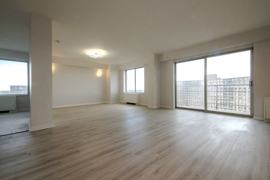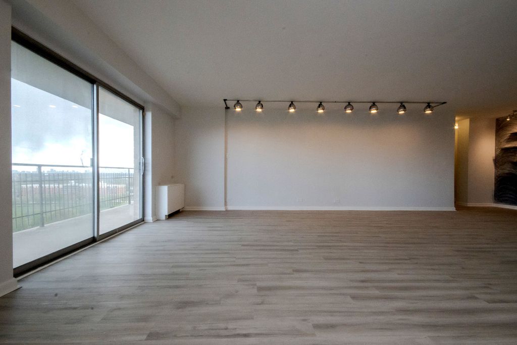 Rarely available, oversized high-floor residence offering exceptional scale, light, and a 36-foot private balcony with sweeping park and skyline views. This beautifully updated home lives like a single-family residence, featuring an expansive 28' x 18' living room anchored by wall-to-wall windows and direct access to a full-length terrace-perfect for indoor/outdoor living and entertaining. The thoughtfully designed layout provides excellent separation between living and sleeping areas, with three generously sized bedrooms, including a 20' x 20' primary suite with a walk-in closet and a fully renovated ensuite bath. Wide-plank flooring runs throughout, creating a cohesive, modern feel. The spacious kitchen flows seamlessly into a dedicated dining area, offering both functionality and flexibility for everyday living or hosting. Both bathrooms have been tastefully updated with clean, contemporary finishes, including LED-lit mirrors and a double vanity in the primary. Flooded with natural light and positioned to capture panoramic views, this home offers a rare combination of volume, layout, and outdoor space that is difficult to find at this price point. Enjoy the convenience of condo living without sacrificing space-ideal for those seeking room to live, work, and entertain, all within a bright and modern setting.