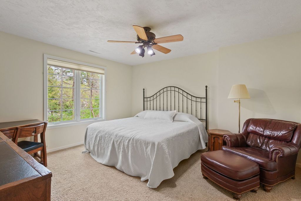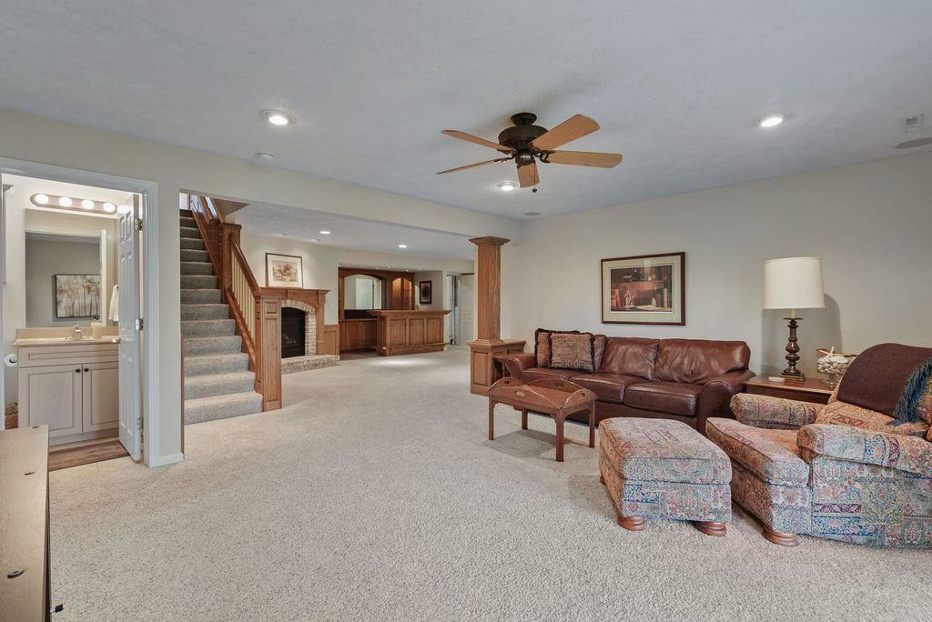 Tucked away at the end of Briarwood Lane, this stunning 4-bedroom, 3-bath condo offers the perfect blend of space, comfort, and low-maintenance living! Step inside to a bright, open living room featuring vaulted ceilings, rich oak hardwood floors, and a cozy gas fireplace-perfect for relaxing or entertaining. The formal dining area flows seamlessly with the living space, creating an inviting layout for gatherings. The updated eat-in kitchen is a standout with Corian countertops, center island, and a dedicated coffee bar-ideal for everyday living. The main level primary suite offers a private retreat with a walk-in closet and full bath featuring a walk-in shower. A second bedroom with walk-in closet and an additional shared full bath with tub/shower complete the main level. Unwind in the beautiful sunroom with newer windows or step out onto the upper Trex deck-perfect for morning coffee. The walk out basement expands your living space with a large family room, second gas fireplace, and a handcrafted bar area-an entertainer's dream! You'll also find a third bedroom with walk-in closet, a fourth bedroom (currently used as an office), and another shared full bath with walk-in shower. Walk out to your private lower deck or lower patio for even more outdoor enjoyment. Additional highlights include a spacious storage/utility room, whole house vacuum, furnace (2024), a/c (2021), water heater (2018), sealed driveway and low-maintenance living, with HOA covering lawn care, snow removal, and common area maintenance. This private setting is move-in ready and the perfect place to call home! Schedule a private tour today!