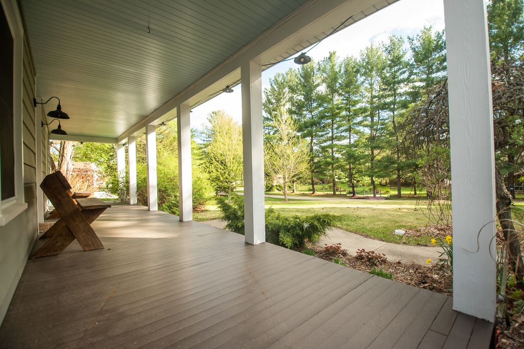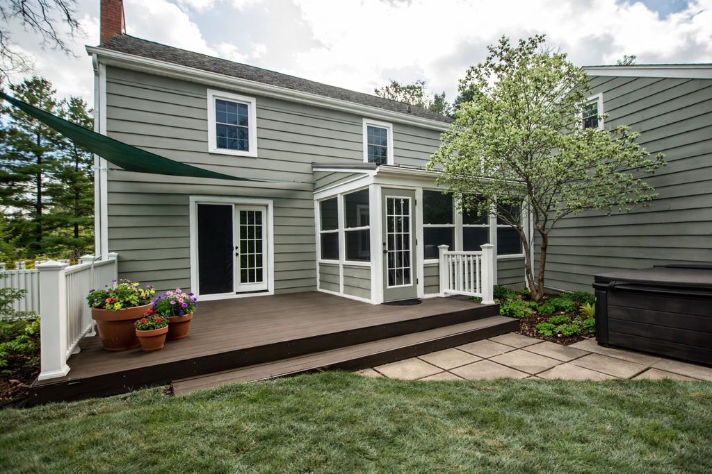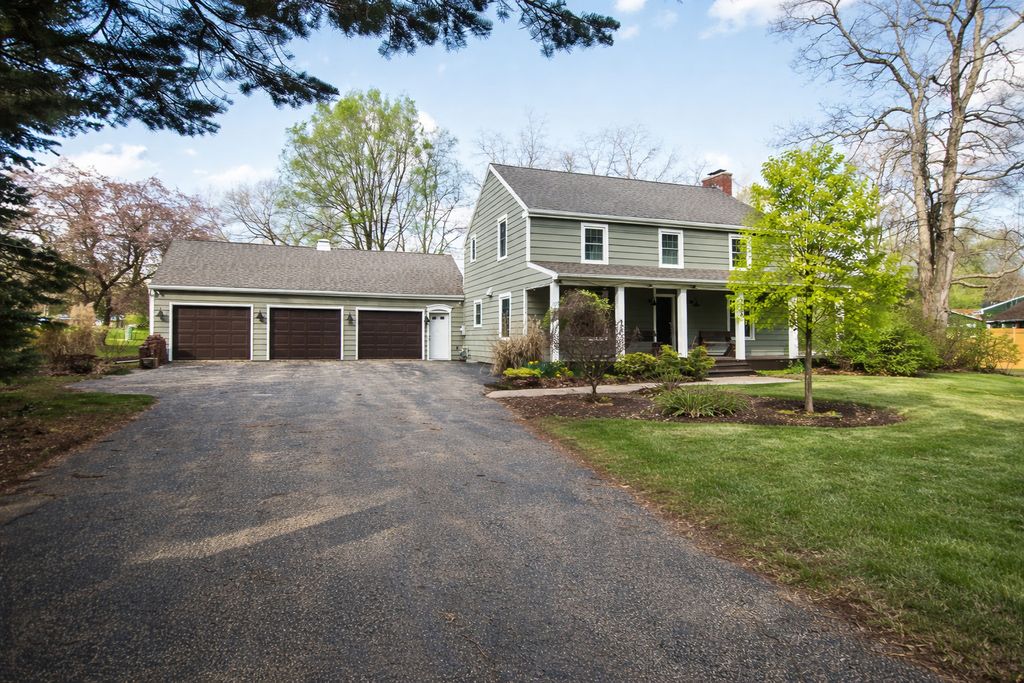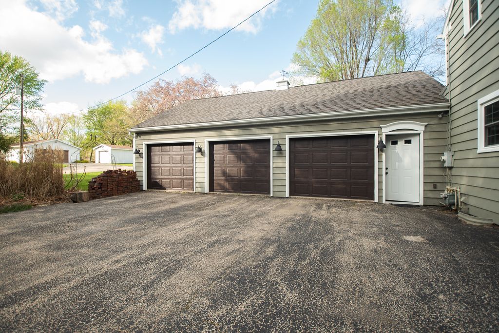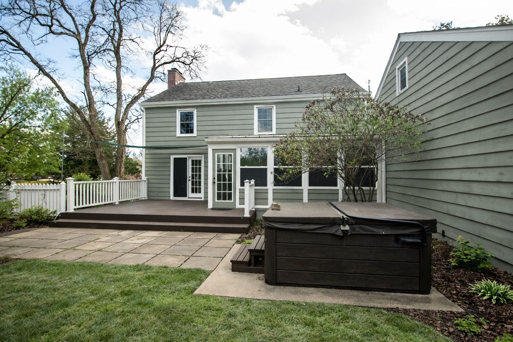 Beautiful colonial-style home located in historic Grand Detour, set on a spacious double lot with mature landscaping. The exterior features cedar siding, a three-car attached garage, a partially fenced yard, and a composite deck-perfect for enjoying the outdoors. Inside, a welcoming entryway leads to a well-designed layout with the kitchen and dining area on one side and a large living room with a fireplace on the other, highlighted by gorgeous hardwood flooring and patio doors opening to the backyard deck. The kitchen offers a large island with granite countertops and convenient access to an enclosed sunroom, which connects to both the backyard and the attached garage-ideal for everyday living and entertaining.