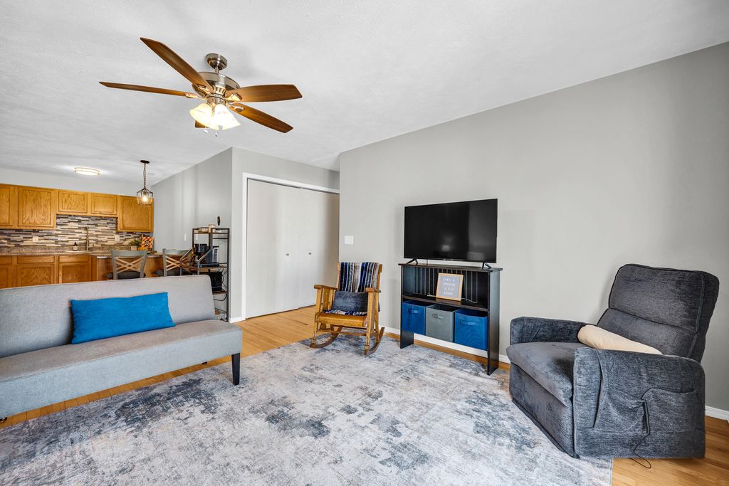 Welcome home to this move-in ready second-story condo in the desirable Airport Park Subdivision! This unit offers comfortable low-maintenance living with stylish improvements throughout. Freshly painted interior, new kitchen lighting, and new blinds create a bright, move-in-ready space. Enjoy hardwood floors in the main living area and the convenience of in-unit laundry. Step outside to your second-story balcony that is perfect for morning coffee or relaxing evenings. HOA fee includes water, lawn care, snow removal, trash service, and exterior maintenance, making ownership easy and stress-free. Great location with convenient access to shopping, dining, and everyday amenities. Don't miss this opportunity for affordable, carefree living!