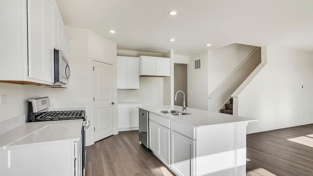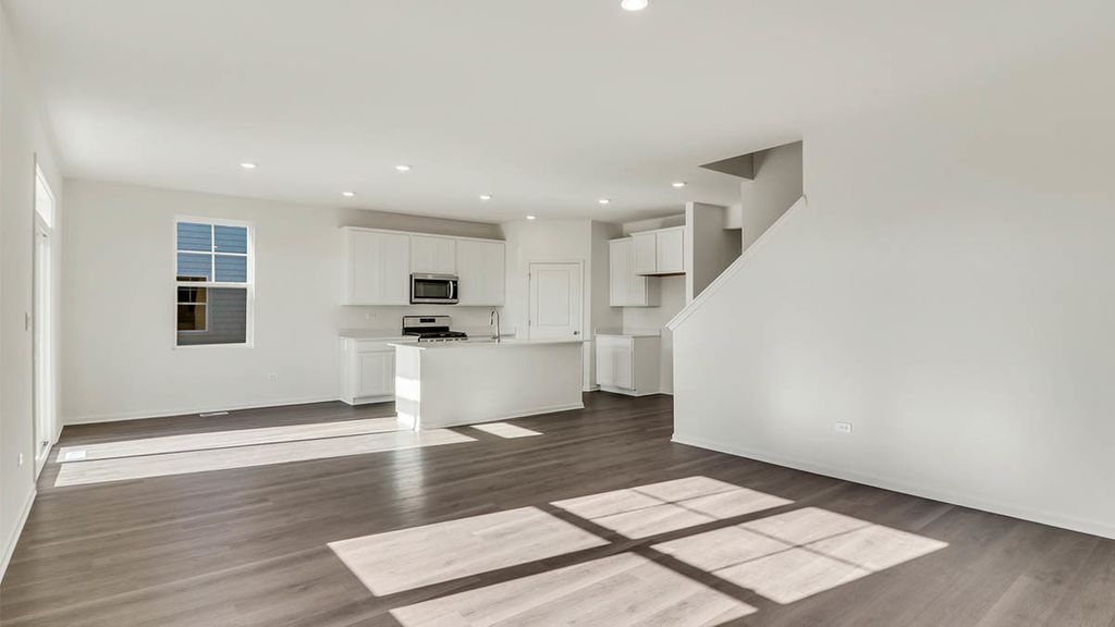Discover yourself at 6208 Leinster Lane in Tinley Park, Illinois, a beautiful new home in our Oak Ridge community. This home will be ready for a summer move-in! This Henley plan offers 2,600 square feet of living space with a flex room, 4 bedrooms, 2.5 baths, 9-foot ceilings on first floor, and full basement. Entertaining will be easy in this open-concept kitchen and family room layout with a large island with an overhang for stools, 42-inch designer cabinetry with soft close drawers. Additionally, the kitchen features a walk-in pantry, modern stainless-steel appliances, quartz countertops, and easy-to-maintain luxury vinyl plank flooring. More flexible space is waiting upstairs in the 2nd-floor loft, offering unlimited potential to suit your needs. Enjoy your private getaway with your large primary bedroom and en suite bathroom with a raised height dual sink, quartz top vanity, and walk-in shower with clear glass shower doors. Convenient walk-in laundry room, 3 additional bedrooms with a full second bath and a linen closet complete the second floor. This charming, historic town evokes a family atmosphere with countless options for shopping, dining and entertainment. All Chicago homes include our America's Smart Home Technology. Photos are of similar home and model home. Actual home built may vary.