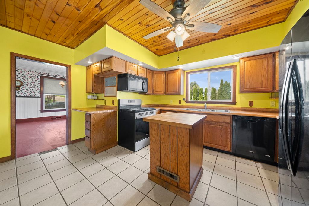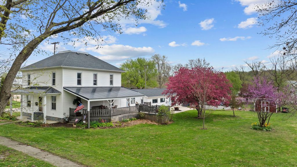 Welcome to this traditional 4 bedroom, 1.5 bath home on a large corner lot, offering a smooth, functional layout with connected living spaces throughout. The main floor includes a spacious kitchen with warm wood cabinetry, formal dining room, living room, and family room. An enclosed porch with tile flooring and a cozy ventless gas fireplace adds flexible year round space. The main floor laundry room features a tiled shower and plenty of storage. Upstairs, four well sized bedrooms provide comfortable space for everyone. Outside, the property offers standout features for anyone who needs real workspace or storage. The oversized 3 car garage includes two workshop areas (each approx. 1311), a toilet, and a Hot Dawg style heater in one shop room, creating a versatile setup for projects, equipment, or hobbies. Exterior updates include newer roof and siding on both the house and garage. Outdoor living is easy with a covered deck featuring a natural gas hookup for your grill, a 24' round, 52" deep above ground pool, a garden shed, and a wide paved drive. Plenty of room for outdoor entertaining on this large corner lot.