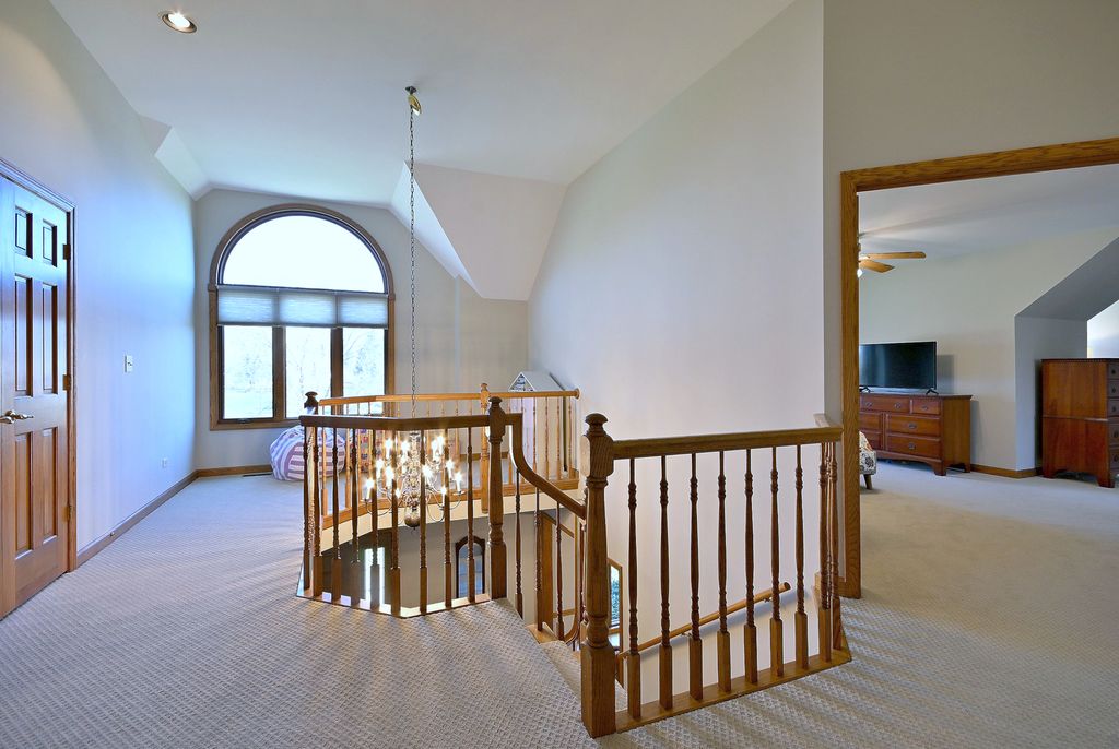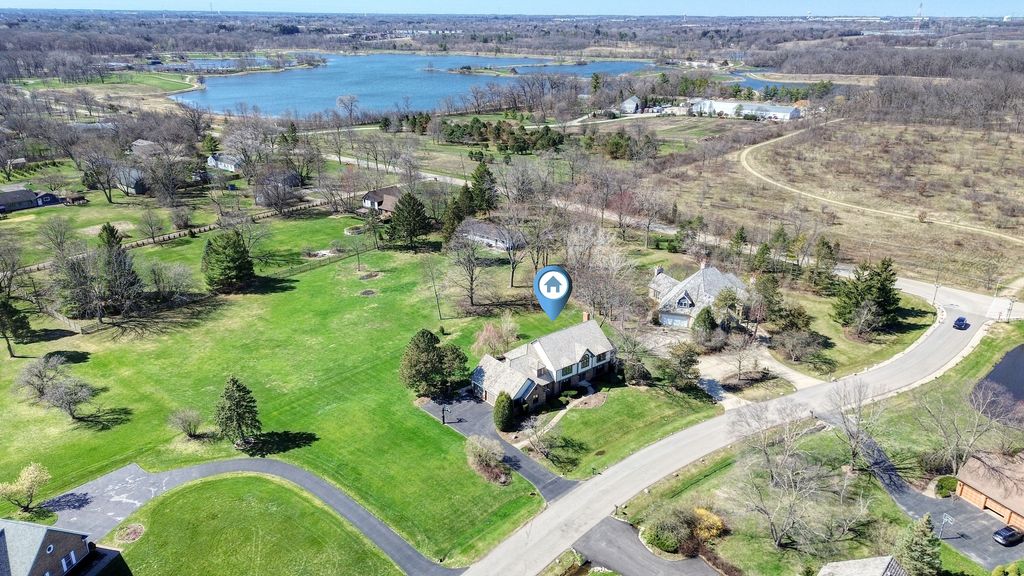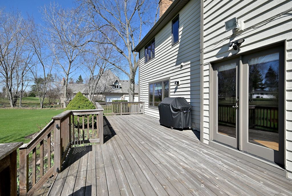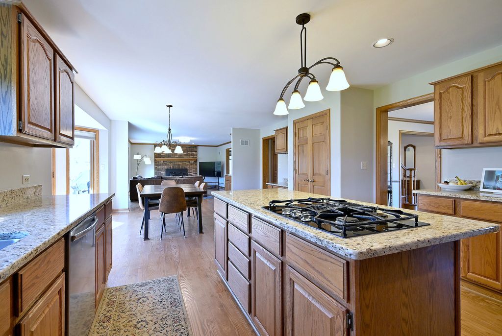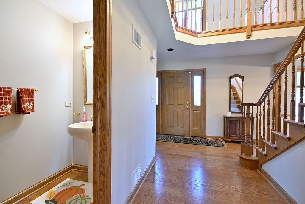 Welcome to this beautifully updated home in desirable Huntington Lakes! This immaculate property offers space, style, and thoughtful upgrades throughout. Step into the inviting formal entry, featuring updated hardwood floors, which flow into the separate formal dining room and living room. The spacious kitchen boasts beautiful oak cabinets, granite countertops, a separate eating area, and opens to a generous family room with a cozy wood-burning fireplace. Enjoy the large bonus sunroom, perfect for year-round relaxation, along with a convenient first-floor office featuring a Murphy bed. Great first-floor laundry room and mudroom just off the garage add everyday functionality. Upstairs, the spacious master bedroom suite includes a private bath, walk-in closets, and additional walk-in storage. Three additional generously sized bedrooms, a second full bath, plus a cute micro-loft area finish out this floor. The fully finished basement enhances your living space with a large recreation area, brand-new composite stone and laminate flooring, a stylish retro-themed bar and booth, a wine closet, an updated full bath, and abundant storage, adding approximately 1,700 square feet to this already spacious home. Outside, the large lot provides park-like views from the oversized deck, perfect for relaxing or entertaining. Located just steps from the forest preserve and running trails and within an award-winning school district, this home truly has it all. Extensive updates since 2022 include fresh paint throughout, new flooring throughout (hardwood, carpet, composite stone, and laminate), two new furnaces, 2 new AC units, new cordless blinds throughout, a new sump pump and pit, a new septic pump, all new well equipment and pump, an osmosis water filter system, and more. Move-in ready and meticulously maintained-this is one you don't want to miss!
