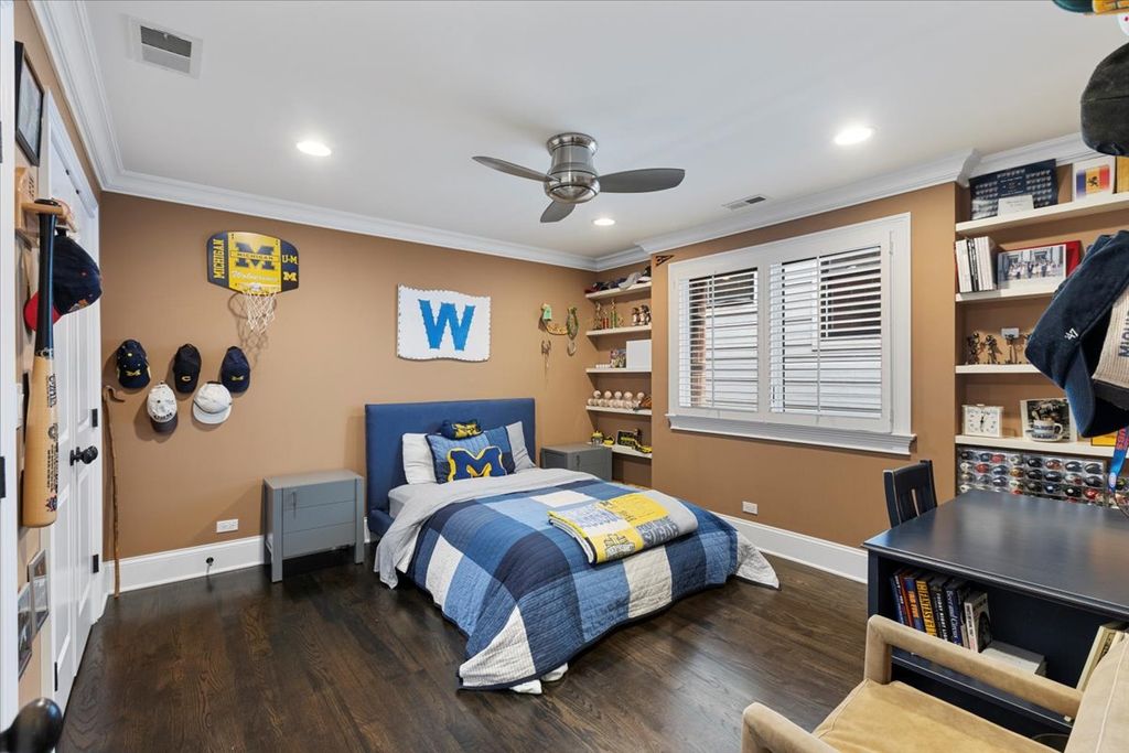 Your search is over! Exquisite, highly upgraded and impeccably maintained custom-built solid brick and limestone home, on serene tree-lined, one-way street, in fantastic walk-to-everything location in the heart of Roscoe Village. Features great light, spacious rooms, an open layout, a thoughtful floor plan ideal for family living and entertaining, and stunning high-end finishes throughout. Gracious foyer opens to south facing, sun-filled living room w/ oversized windows and floor-to-ceiling French limestone wood burning fireplace, and separate dining room w/ beamed ceilings that easily accommodates a large table. Designer half-bath. Incredible professional grade chef's kitchen offers oversized full slab island w/ breakfast bar, walk-in pantry, sleek built-in desk, classic custom cabinetry, and high-end stainless steel appliances including Sub-Zero refrigerator/freezer, Wolf 48-inch six-burner oven/range and Bosch dishwasher. Huge great room off kitchen opens to deck for grilling, sport court and spectacular Trex deck w/ bespoke lighting over garage. Second floor offers 3 bedrooms and 2 baths, including luxurious primary suite w/ two professionally organized walk-in closets, and natural stone spa bath w/ dual vanities, jet tub, and big steam shower w/ rain shower head and body sprays. Rare third floor boasts a huge office perfect for working from home that opens to a sunny Trex roof top deck. Bright lower level w/ high ceilings, radiant heat & excellent light features recreation room w/ wine fridge and wet bar, 4th bedroom w/ walk-in closet and beautiful natural stone bath, wine cellar, laundry room w/ sink and side-by-side washer/dryer, and large separate storage rm. Gorgeous hardwood floors. Solid core doors. Custom millwork, window treatments, paint and designer lighting throughout. Zoned heat & air. 2-car garage w/ tons of storage. Unbeatable location steps to restaurants, cafes, shopping, groceries, parks, Starbucks, the "L" and all that Roscoe Village has to offer.