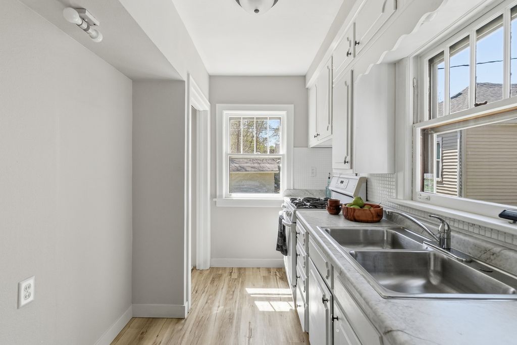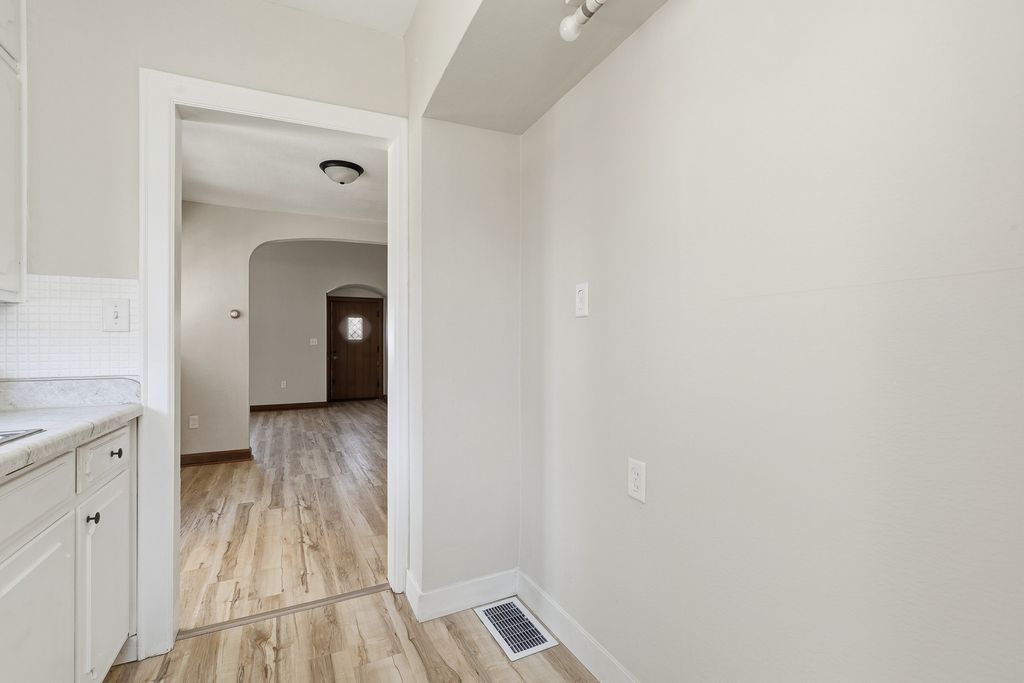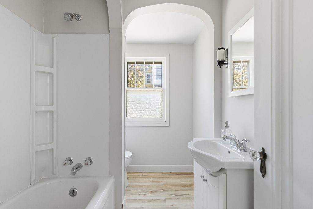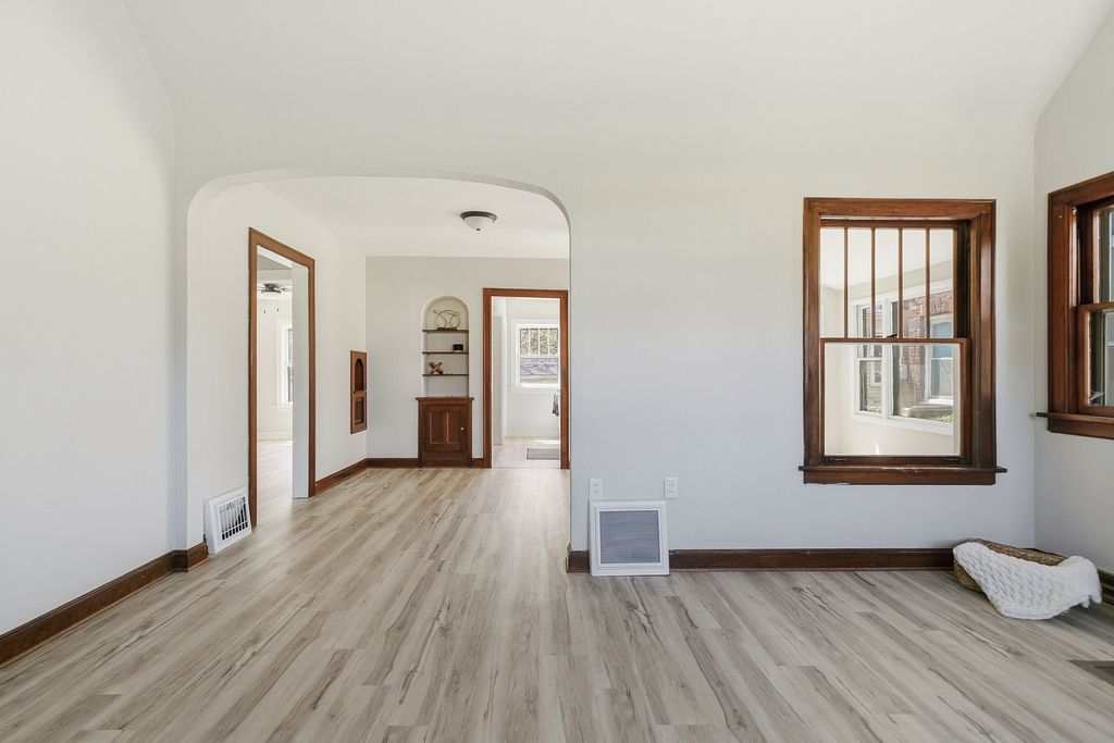 Welcome home to this beautifully renovated 2-bedroom gem where timeless character meets modern comfort, featuring stunning arched doorways and original woodwork that bring warmth and personality to the main living spaces. Step inside to an inviting living room with elevated ceilings that create an open, airy feel while maintaining a cozy atmosphere, flowing seamlessly into the formal dining room and into a functional galley-style kitchen that makes hosting effortless. Just off the kitchen, the attached sunroom offers a versatile space perfect for a home office, breakfast nook, or hobby room filled with natural light. The home includes two generously sized bedrooms and a full bathroom conveniently located off the dining area, while the basement provides ample storage or the opportunity to finish additional living space. Blending classic charm with thoughtful updates, this home offers flexibility, comfort, and endless potential. Listing agent related to seller.