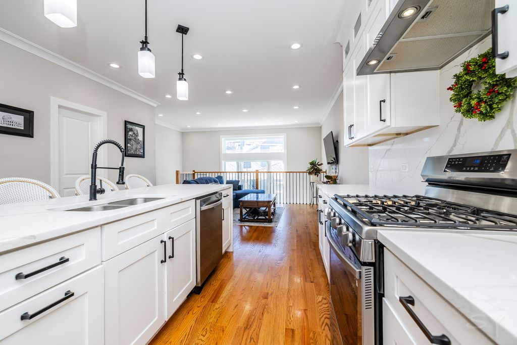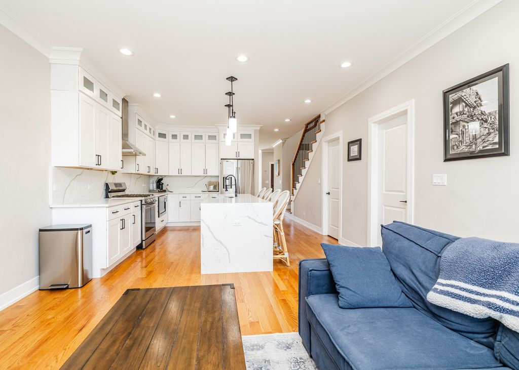Stunning 4 Bed/3.5 Bath single family home with a 2 car garage in beautiful Jefferson Park area! Newly constructed in 2022, this home features a bright & open concept with high ceilings and elegant craftsmanship. Eat-in chef's kitchen equipped with SS appliances, oversize island with quartz countertops, & walk in pantry. Spacious master suite with two walk in closets and luxurious master bathroom with jet shower and double vanity. Second hallway bathroom with double vanity as well. Laundry on 2nd floor (bedroom level) but the home also has laundry hook ups in the lower level too. Basement includes a large recreation room with full wet bar, 4th bedroom, full bath, and lots of storage. Hardwood floors thru out 1st and 2nd floors, carpet in basement. Home has a drain tile system with sump and ejector, tankless water heater, and hi-efficiency HVAC. Enjoy the fenced in yard with a concrete patio ready for entertaining. Great location close to shopping, transportation and parks! Nothing to do but move in. Hurry, this one won't last long!