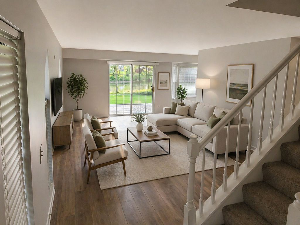 Spacious 3-bedroom, 2.5-bath townhome offering over 1,800 sq ft of comfortable living space, tucked away at the end of a quiet cul-de-sac. This well-maintained home features a functional layout with large rooms, lofted ceilings, and an abundance of natural light throughout. The kitchen is clean and well-kept with ample cabinet space, while bathrooms have been updated within the last several years. Durable luxury vinyl plank flooring runs throughout the main level. Upstairs laundry adds everyday convenience, and the primary suite includes a walk-in closet and private en suite bath. Enjoy peaceful, unobstructed pond views with no rear neighbors from the large back deck - a rare and desirable setting. Oversized 2.5-car garage provides excellent storage and flexibility. Ideally located near grocery stores, shopping, and restaurants, while still offering a quiet, tucked-away feel. Move-in ready with opportunity to add your own finishing touches.