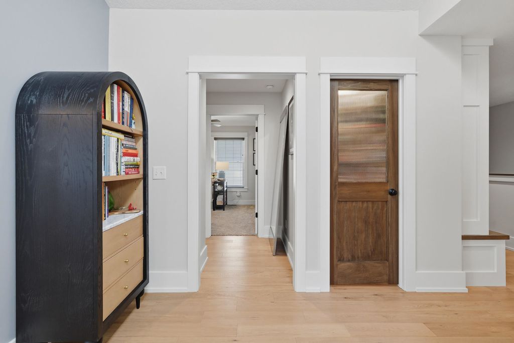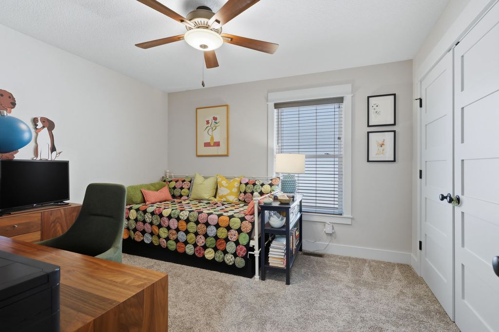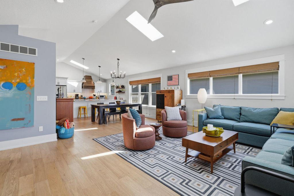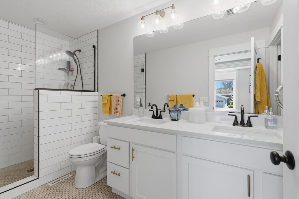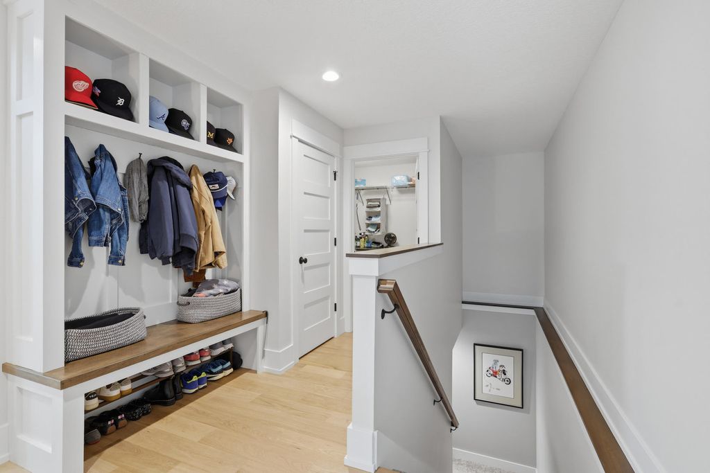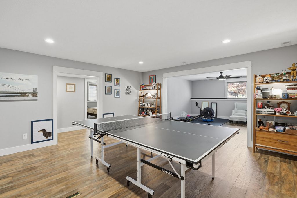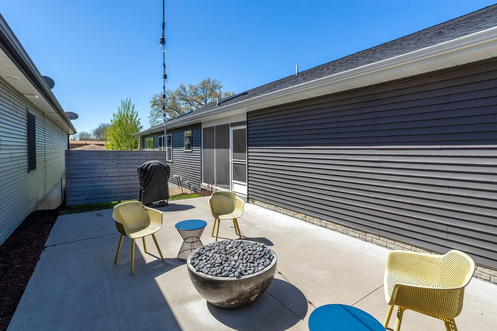 Fantastic newer built four bedroom ranch home with zero entry from the attached 3 car garage. Main level features an open floor plan with white oak engineered plank flooring; spacious great room with fireplace and skylights; fantastic kitchen with an abundance of cabinetry, gas range with custom hood, quartz countertops with breakfast bar, and a generously sized walk in pantry; dining area; primary bedroom with en suite and walk in closet; guest bedroom; additional full bath; back foyer with locker drop zone, bench and coat closet; separate laundry room; and access to the screened porch which leads to the private patio. The finished basement includes a rec room with custom built ins; family room with a bank of windows; guest bedroom; full bath with cantilevered cabinetry and linen closet; fourth bedroom with epoxy floor currently used as an office; and a great craft room with custom sliding door to additional storage. The exterior living space is exquisite and encompasses a covered front porch with custom railings; screened porch leading to the private patio with gas firepit; cedar privacy panels; and beautifully landscaped yard. A great location with close proximity to a neighborhood park, riverfront bike path, dining, and interstate access add to the appeal.