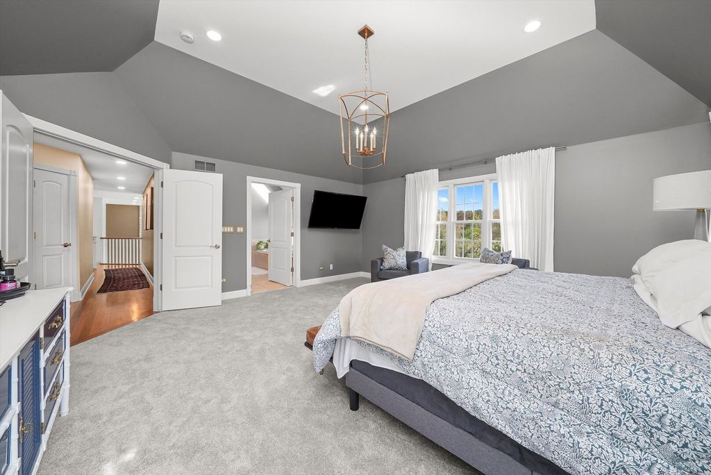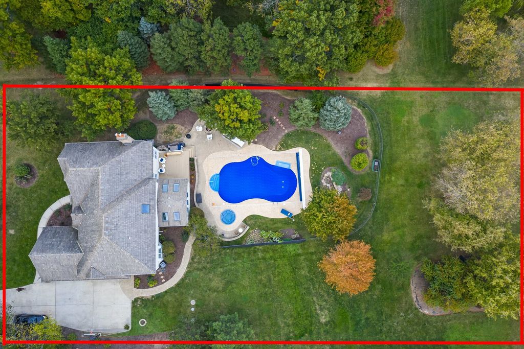 Luxury living in the heart of Gurnee! Welcome to your private retreat - a custom estate set on 1.35 lush, professionally landscaped acres in Gurnee's desirable Timberwoods community. This stunning 5-bedroom, 4.5-bath home offers nearly 5,300 sq ft of refined living space designed for comfort, style, and entertaining. Step inside to soaring ceilings, expansive windows, and a flowing open layout that perfectly blends casual elegance with modern functionality. The gourmet chef's kitchen features premium stainless-steel appliances, custom cabinetry, quartz countertops, and an oversized island opening to a dramatic family room with a floor-to-ceiling stone fireplace. Enjoy the four-season sunroom, formal dining room, and private home office - all overlooking your serene backyard oasis. The second-floor primary suite is a tranquil escape, boasting a spa-inspired bath with dual vanities, soaking tub, and spacious walk-in closet. Four additional bedrooms and multiple-flex spaces provide ample room for family, guests, or remote work. Step outside from the sunroom to your resort-style haven. Newly installed composite Trex decking leads to a fenced, heated in-ground pool and spa surrounded by stamped concrete patio, landscaped waterfall stream, and mature trees for exceptional privacy. Perfect for summer entertaining or peaceful relaxation year-round. For garden enthusiasts, a newly fenced raised-bed area and garden shed await at the rear of the property, with room to expand. The mostly finished lower level adds even more living space with a reconfigured layout, recreation room, fireplace, updated full bath, and large walk-in closet. The expansive utility room includes extra storage and a convenient stairway to the attached three-car garage - perfect for vehicles, hobbies, or a workshop. Ideally located in a quiet, established neighborhood minutes from I-94, top-rated District 50 schools, and shopping at Gurnee Mills or Libertyville's charming downtown. Additional updates: new carpet and lighting, refinished basement, redone pool liner and cover, new outdoor lighting, Trex decking, air-duct cleaning, septic service (Sept 2025), and raised flower beds with fencing. This is luxury suburban living at its finest!