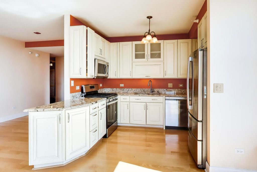 Just reduced! Well maintained 2 bedroom 2 bathroom condo in the South Loop priced to sell! This corner unit features South, West and City views, newer laminate floors in the living area, a living room and dining room and a spacious balcony off the living room. The kitchen has a breakfast bar, cream cabinets, granite countertops and stainless steel appliances. There is also an in-unit washer and dryer, a jacuzzi tub in the second bathroom and a primary bedroom with a full bathroom. A 1-car garage parking space is included in the price! This is a full amenity building with a 24 hr doorman, outdoor pool, hospitality guest suite and dog run. Fitness Formula Club (FFC) is on site (separate cost for membership). Within short walking distance to Trader Joe's, Jewel, restaurants, dog park, Green & Red lines, CTA, Grant Park, the Lakefront, museums, Roosevelt Collection Shops and much more! Check out the 3D tour.