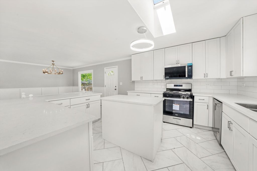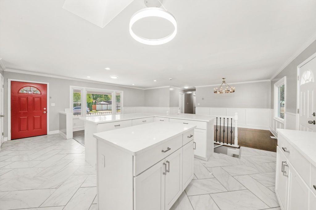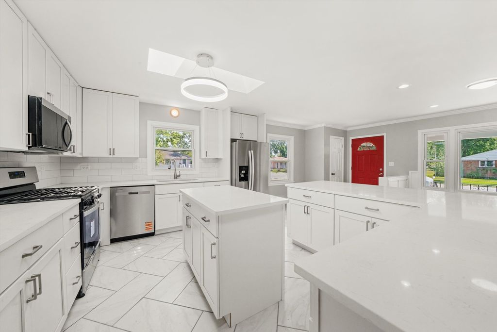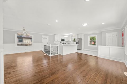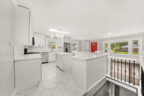 Gorgeous rehabbed 4 bed 2.5 bath ranch with a 2 car attached garage and nice curb appeal on a corner lot in Lansing. Beautiful hardwood flooring throughout most of the main level. Walk in to luxury and open concept in this warm & inviting home with freshly painted walls and wainscoting accents, recessed lighting and plenty of entertaining space. Enjoy cooking in your brand new kitchen with white shaker cabinetry, quartz countertops, a spacious island with a breakfast bar seating, subway tile backsplash and stainless steel appliances. Down the hall are four generous bedrooms with brand new flooring, ample closet space and 2 full bathrooms with all the modern finishes and meticulous tilework. The fully finished basement with a family room with brand new vinyl flooring, a separate utility and laundry rooms with epoxy flooring and a half bath for convenience. Head out to the fenced in yard with a concrete patio for outdoor entertaining. Call and schedule your showing today! Garage window will be installed 8/15/25